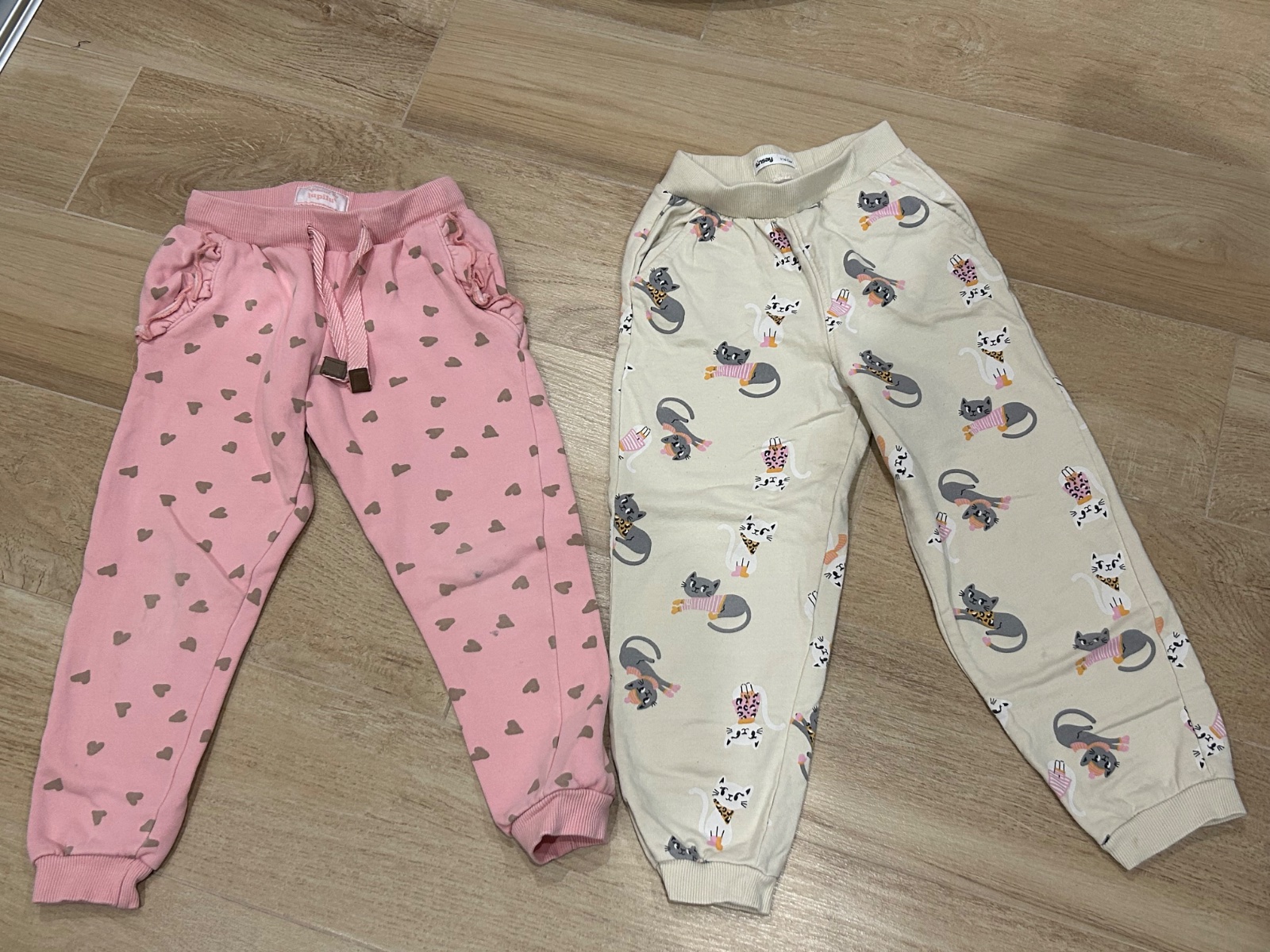 Ružové Lupilu 110/116, mačičkové Sinsay 116. Cena spolu 3€, nájdu sa fliačiky.