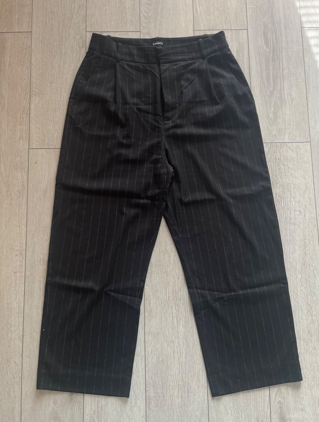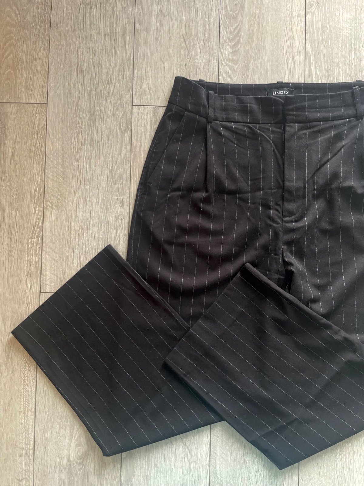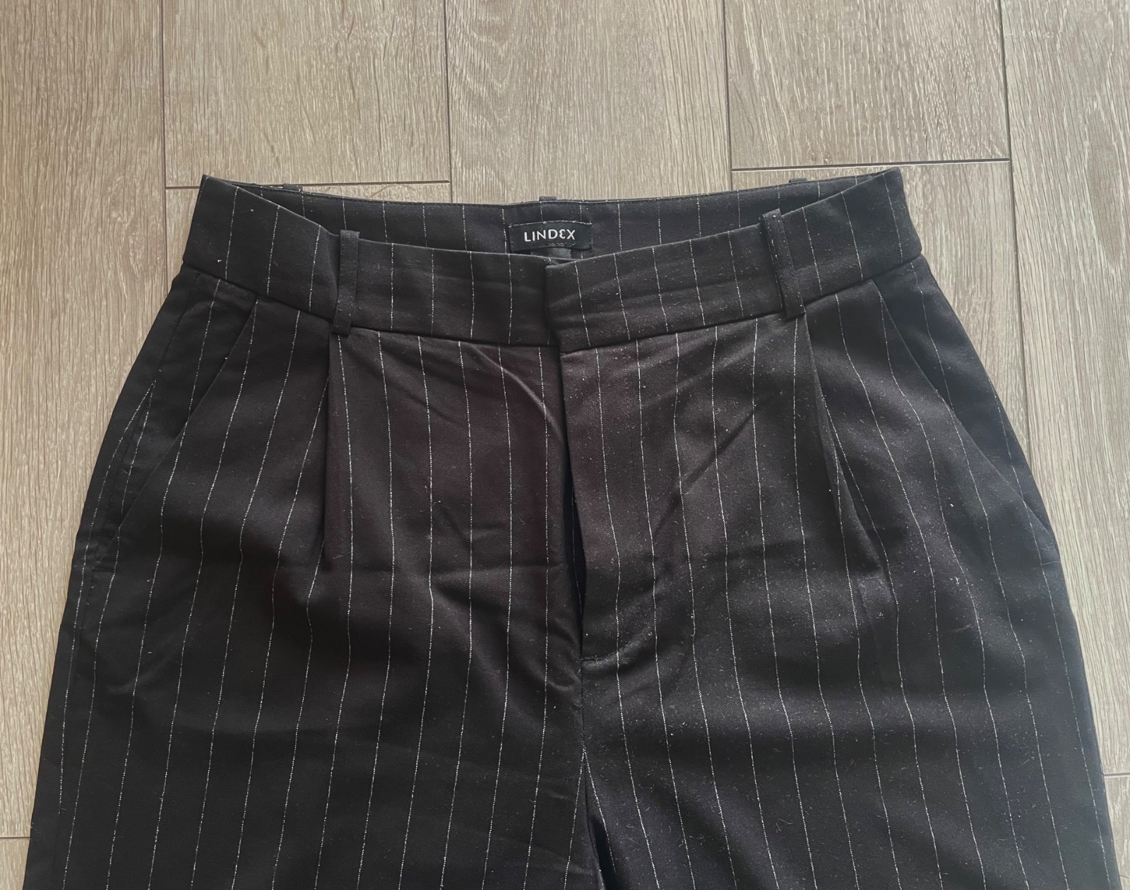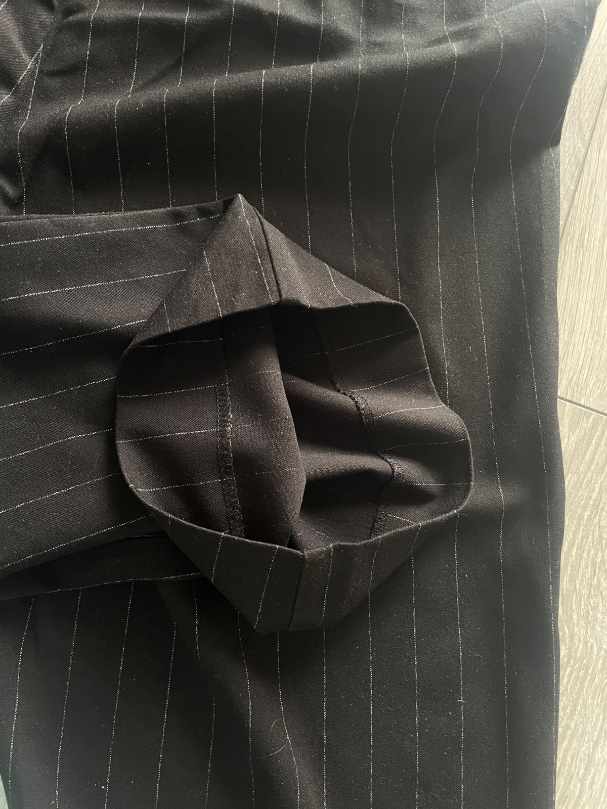 Predám tieto spoločenské klasické čierne nohavice s jemnými bielymi pásikmi.