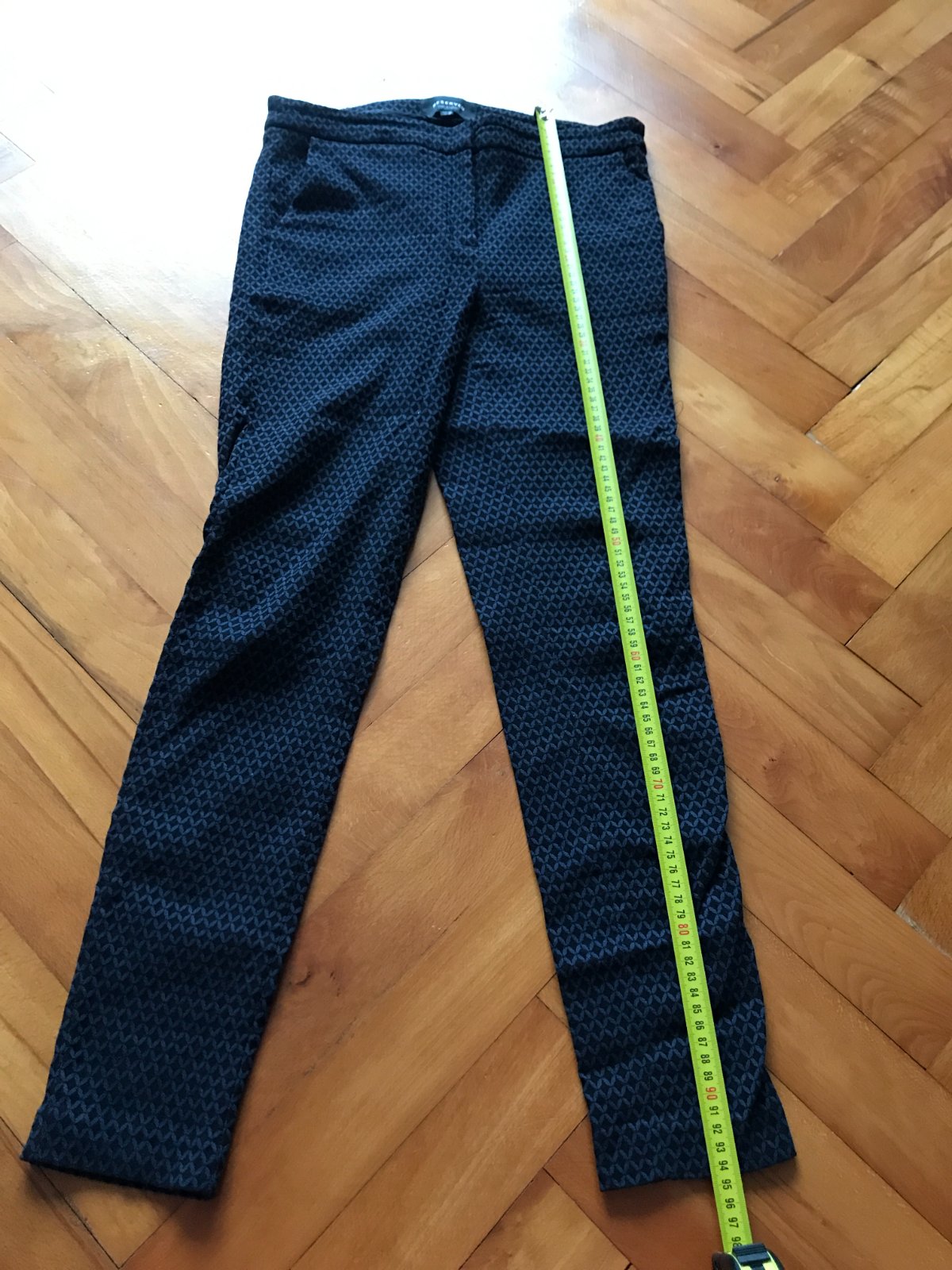 dĺžka -95cm, šírka v páse-37-42x2cm (natiahne sa), dĺžka vnútorného stehna- 68cm, predný sed - 28cm, zadný sed - 33cm,šírka bokov- 39x2cm