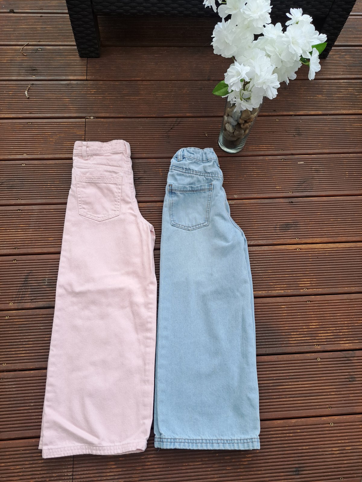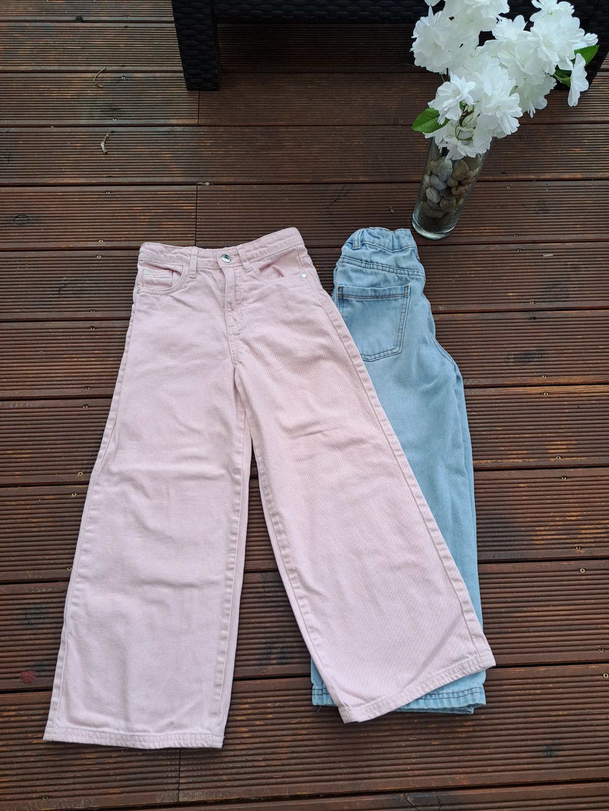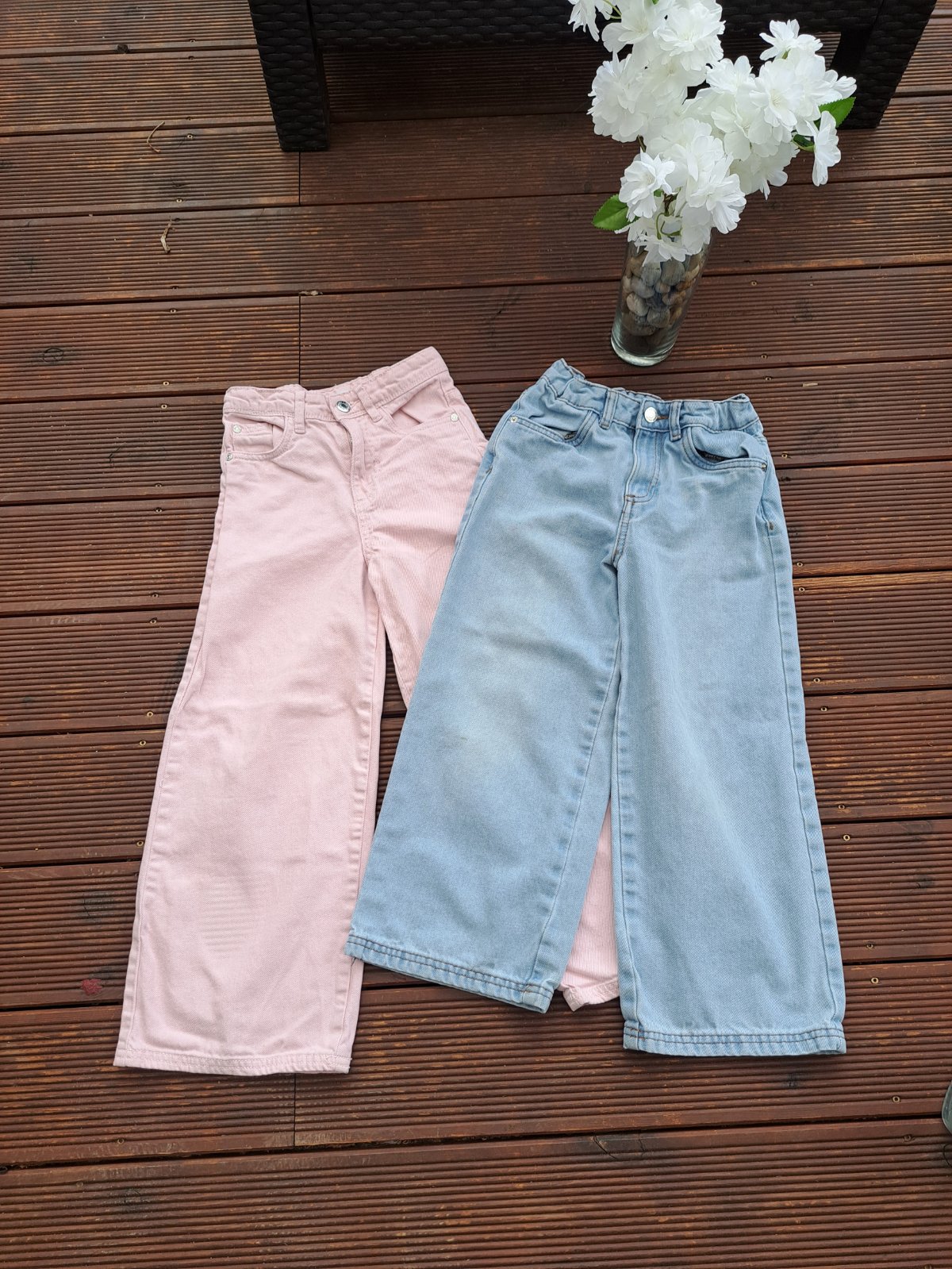 Pekný stav. Veľkosť sedí. V pase sa dajú nastavovať. Moderné široké, wide leg. Cena za oboje spolu.