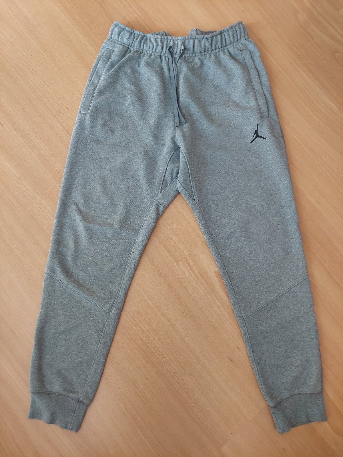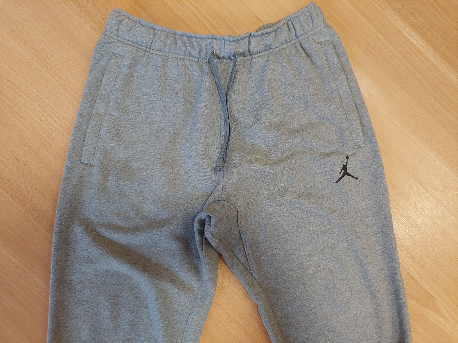 Tepláky s mierne znizenym sedom zn. Jordan, veľkost S (aj zodpoveda). Su nosené s veľa ďalšimi, bez poškodeni, farba OK. V pase je gumička a funkčna snurka, maju dobry strih. Urcite odporucam.