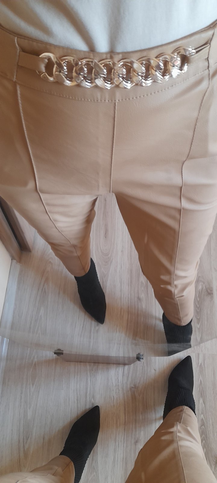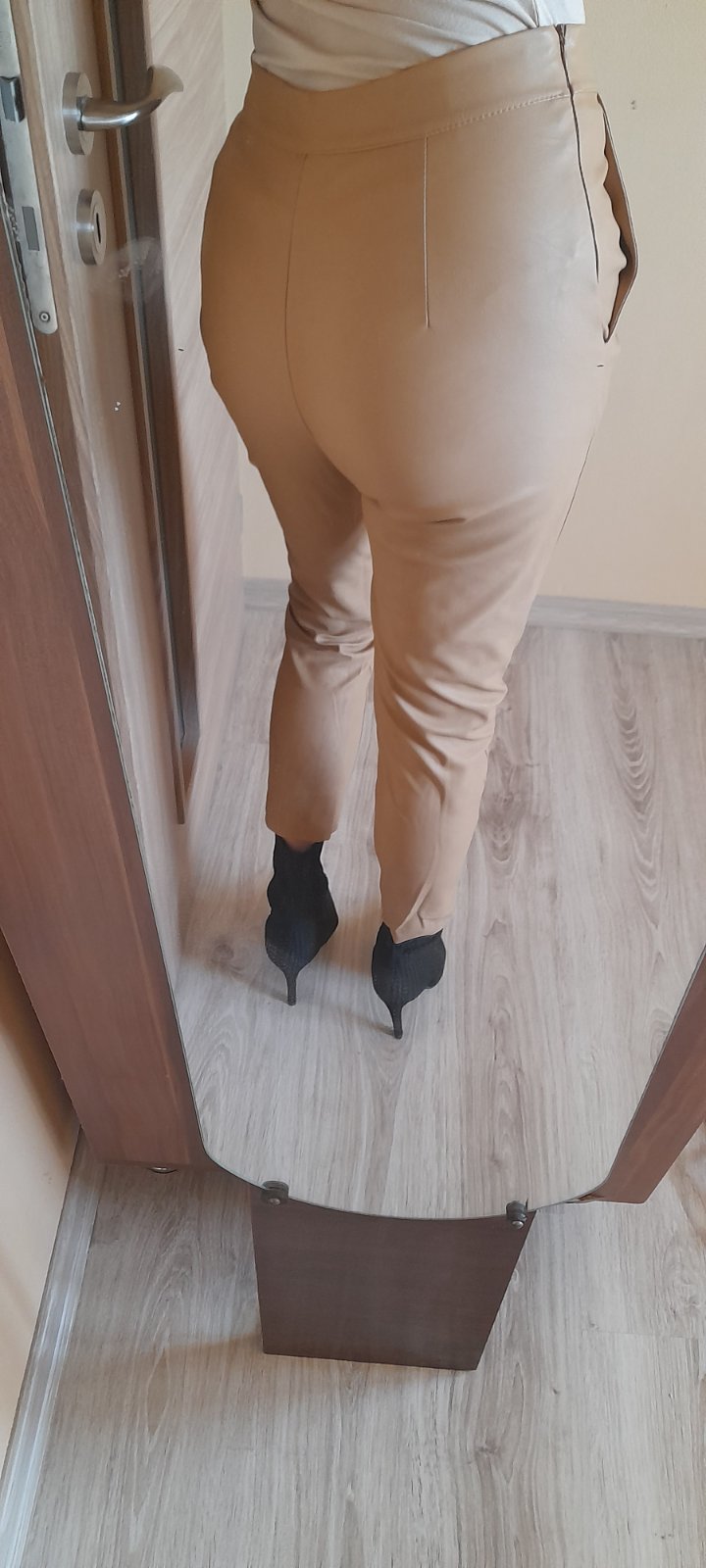 Elegantné kožené nohavice s vysokým pásom a pukmi. Kupované v butiku, cena vysoká. Par x vzaté