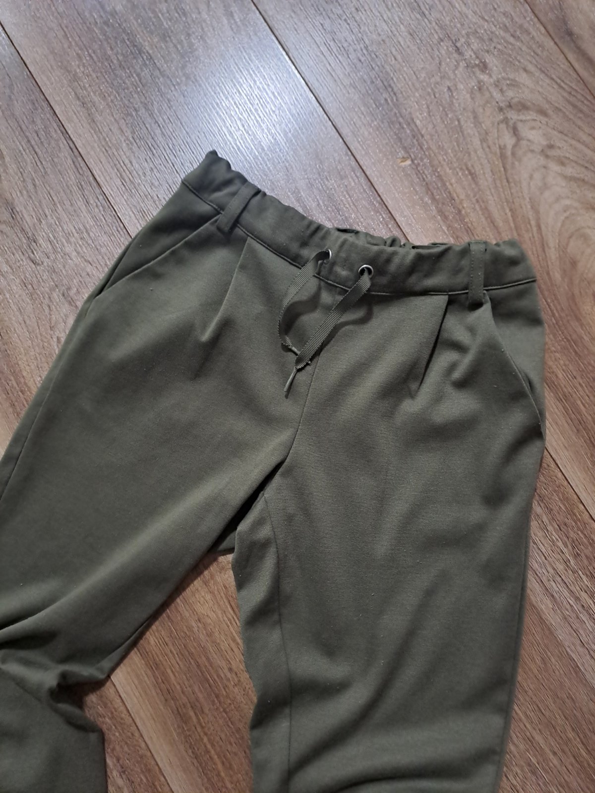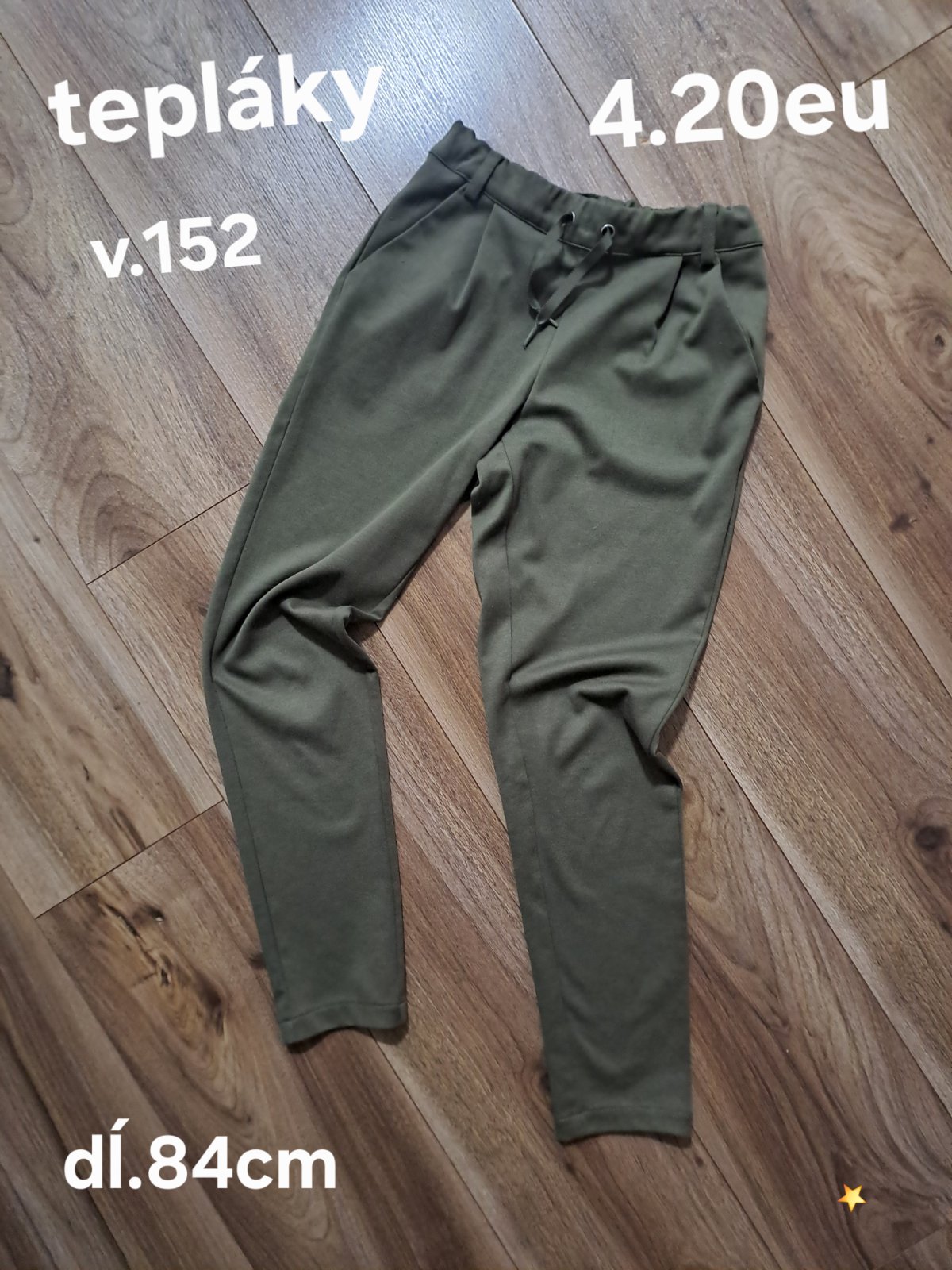 Nové, s visackou, velkost 8-10 rokov ale su vacsie, v pase guma a snurka, zelene dlzka 85 cm, svetlosive 90 cm, pas vklude 29/30 x2 a este povolia kedze je guma a snurka.