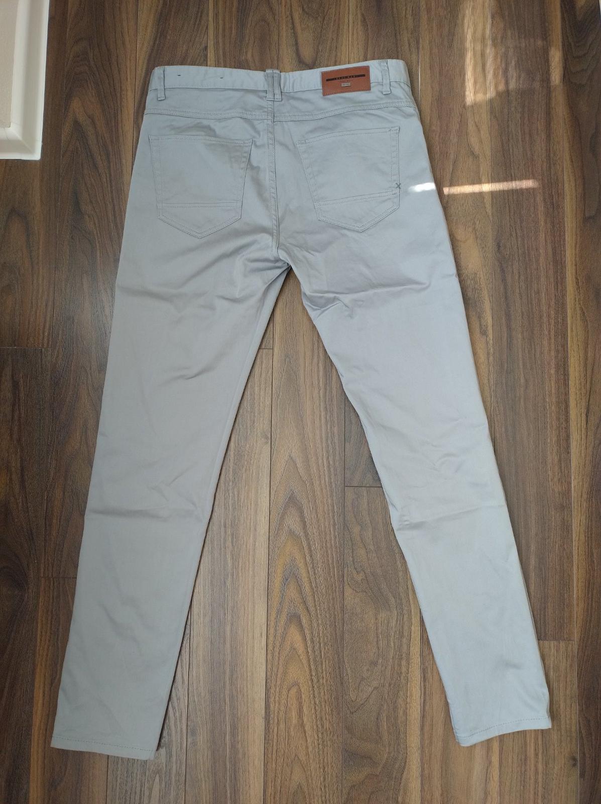 Posúvam pánske chinoa nohavice po manželovi v top stave. Značka Zara, veľkostne M-ko, rozmery sú na foto (štítky odstrihávam pred prvým praním). Farba je svetlošedá a má jemný striebristý odlesk, ktorý mi fotoaparát nezachytil. Nosené minimálne. Manžel je viac rifľový a po lete na korčuliach ich nepresiahne cez lýtka 🤭
