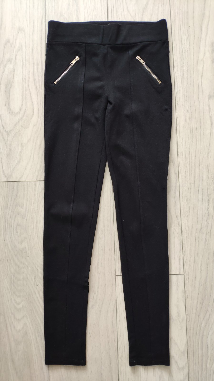 Cierne moderne nohavice na spodu maju lem su peknucke, take sportovo elegantne a moderne velkost 36 sedi na S/M dlzka 92 cm pas 38-42x2 boky 49x2 B54