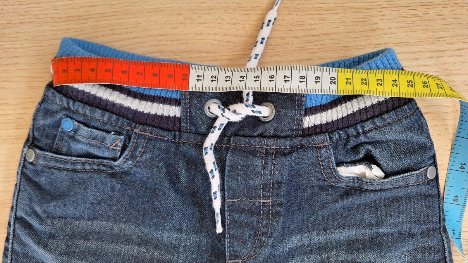 Rifle sa zapinaju na zips a falosny gombik. Pas je regulovatelny gumickou. Pas v klude 2x27cm, boky 2x35cm, stehno 2x19cm, bocna dlzka 58cm, od rozkroku 40 cm