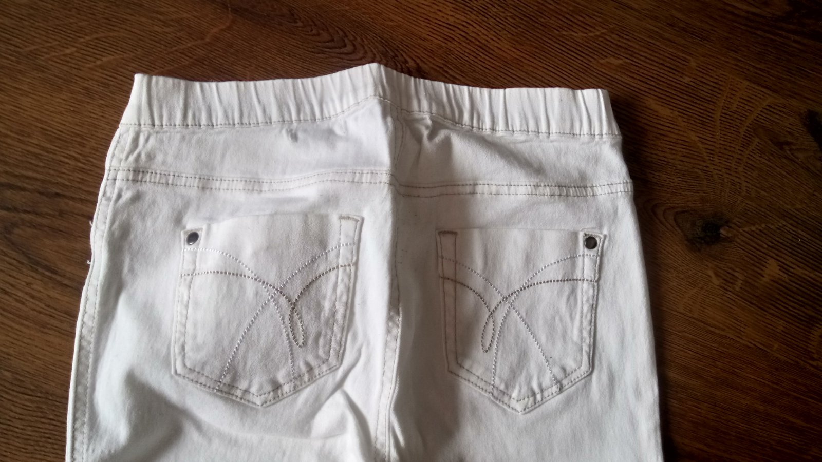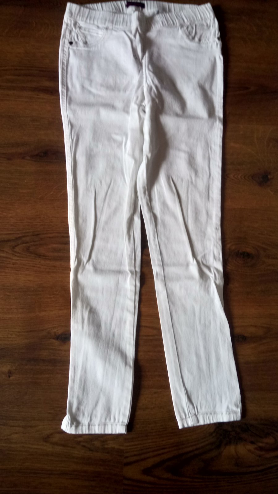 V perfektnom stave ako nové, jemne elastické. Farba jasne čierna, v zadu zips, bez vreciek Pás 2x33cm max 34cm Boky 2x43cm 2x 47cm Dlžka 106cm Zadny sed 35cm Predny sed 26,5cm Spodny okraj 2x 25cm