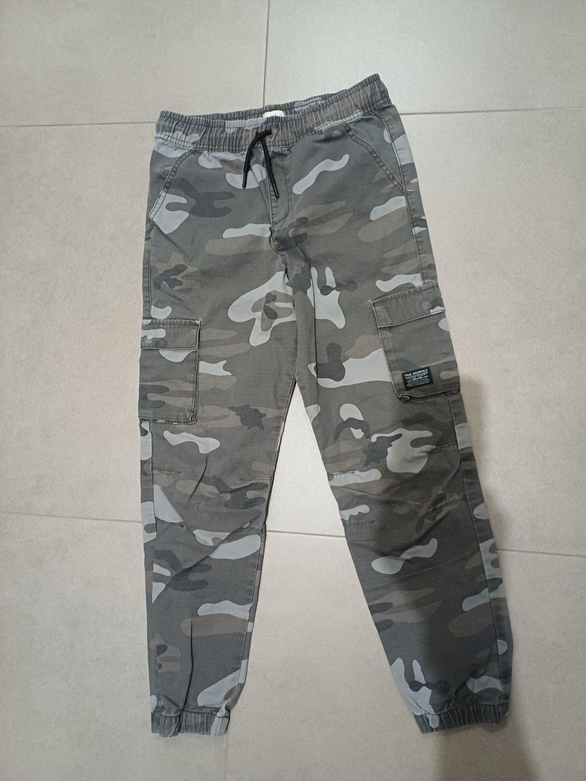 Predám zachovalé maskáčové nohavice. Uvedená veľkosť 152. Rozmery: celková dĺžka 89cm, dĺžka od rozkroku 63cm, maximálna šírka v páse 2x 35,5cm - možnosť regulácie šnúrkou.