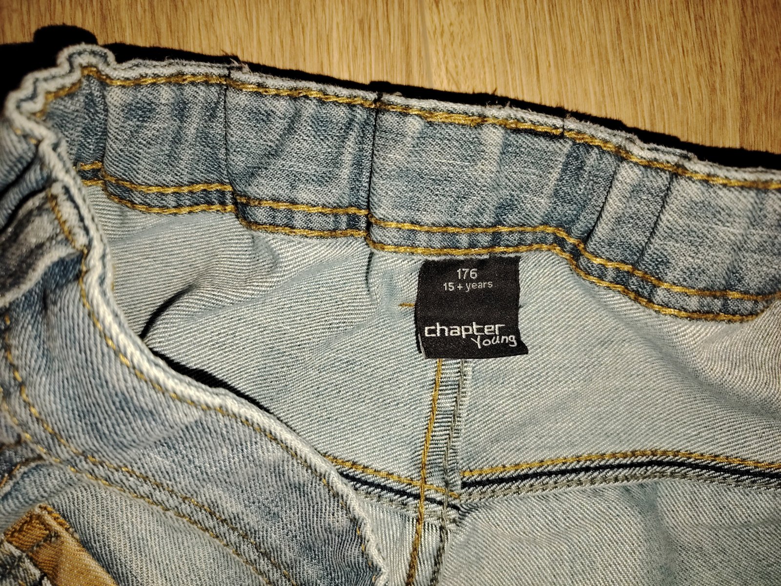 Predám nové rifle značky Chapter young, veľkosť 176 ( 15+ rokov ), v spracovaní mramorového DENIMu , detailné štepovanie, zapínanie na zips, pevný pás ( z vnútornej strany je pohyblivý pás vo forme...