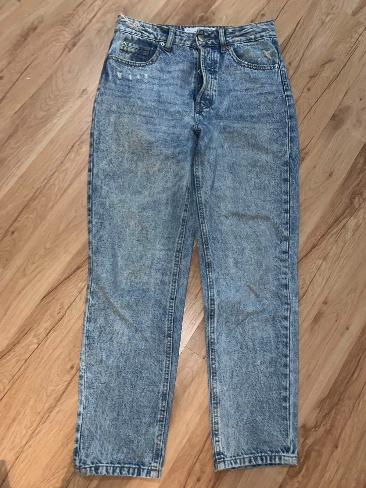 Výborný stav, nepruzia, vysoký pás, mom strih, veľkosť 36, pás 37 cm, d. 98 cm, vnútorná dĺžka 71 cm, sedy 32/41 cm