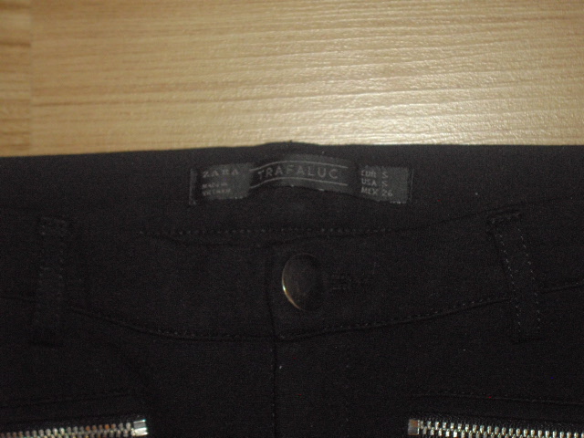 Elastické nohavice vhodné skôr pre štíhle dievča. Nastaviteľný pás. Veľkosť písaná S, dcérkou nosené ako v.152. Na jednej sáre je rozpárané šitie (detail foto) - zohľadnené v cene