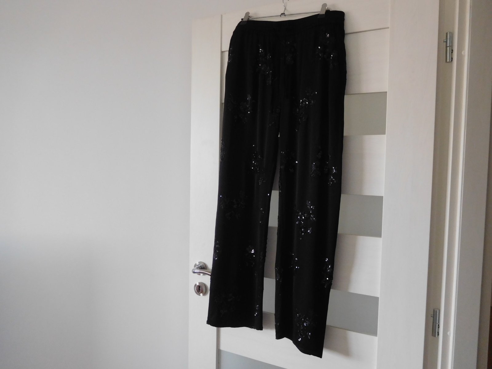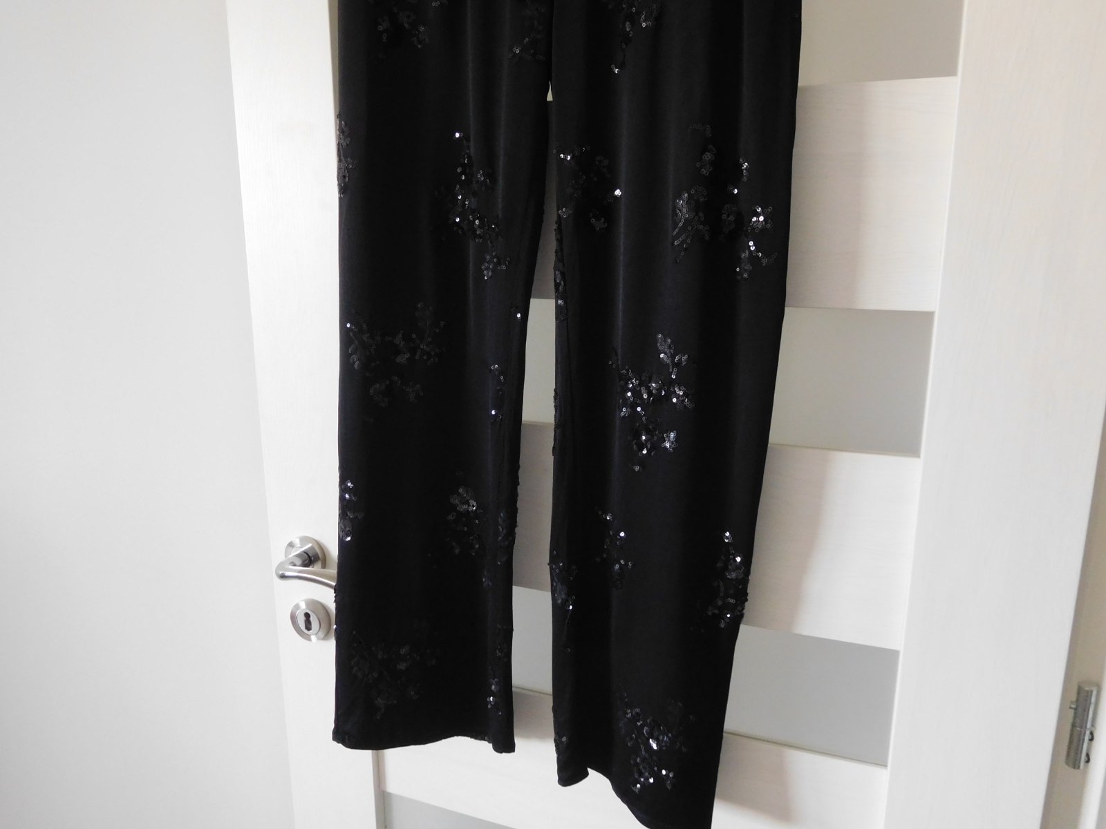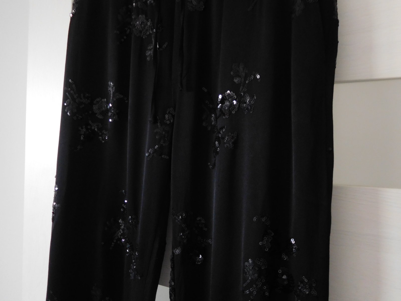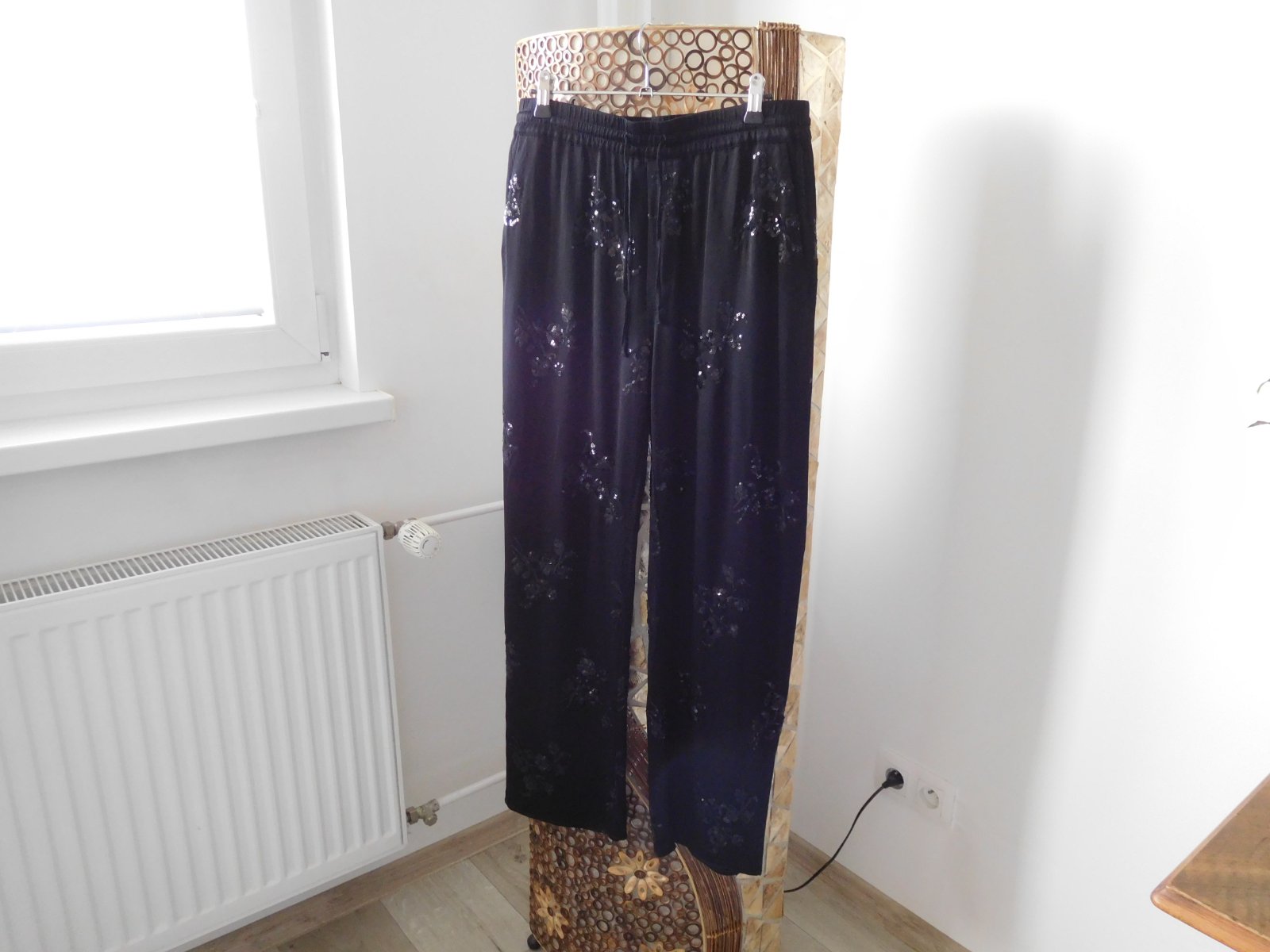 Nohavice sú z pružného satenového materiálu zdobené štrasom viď foto,