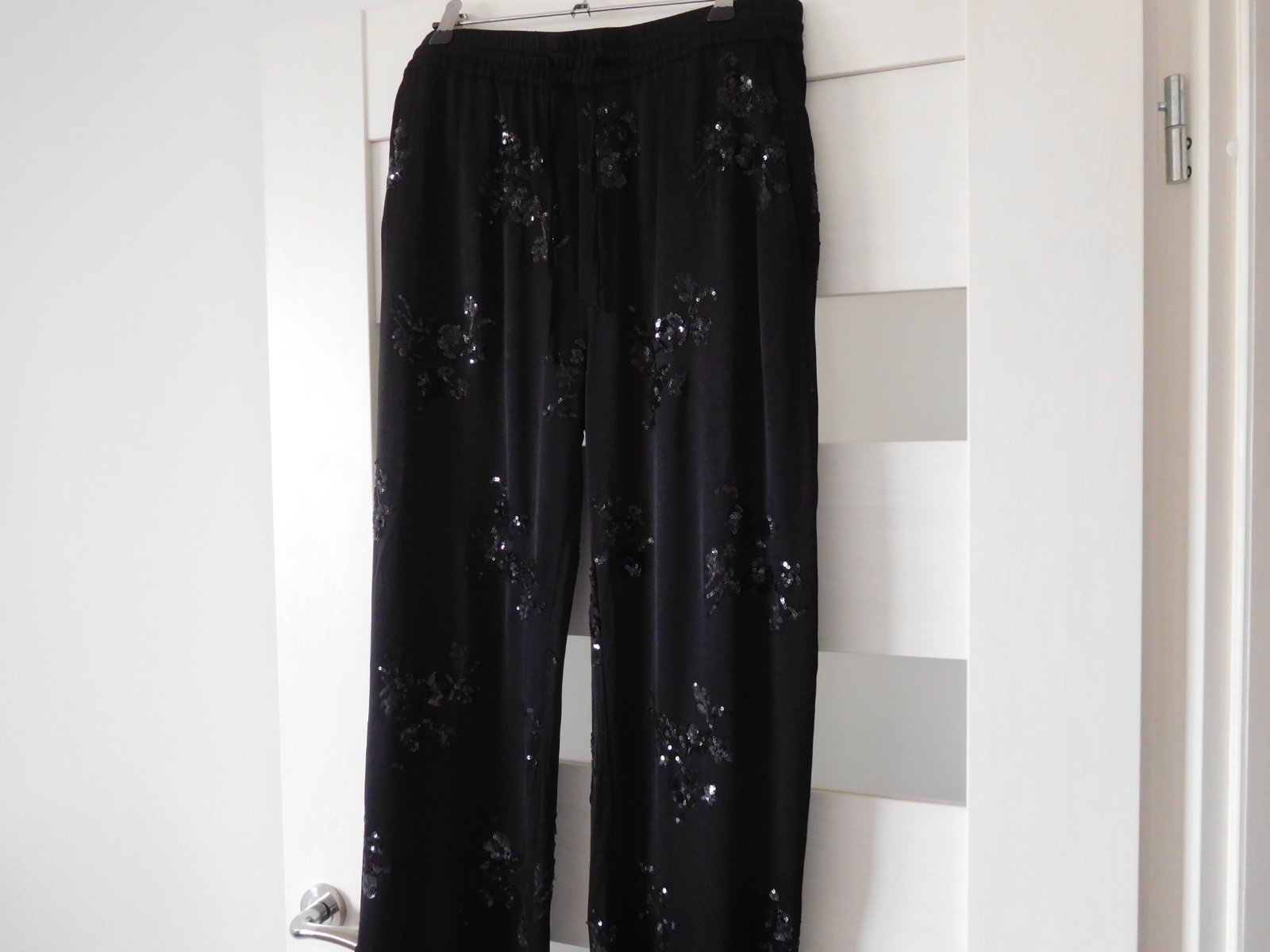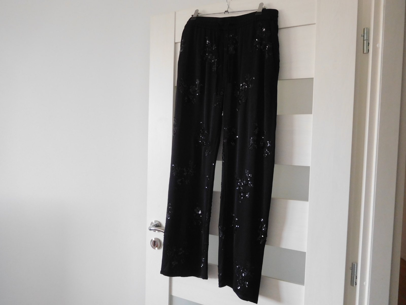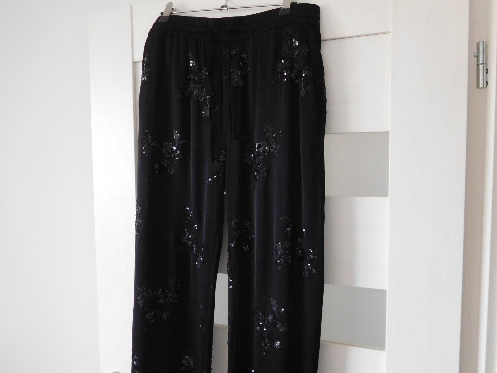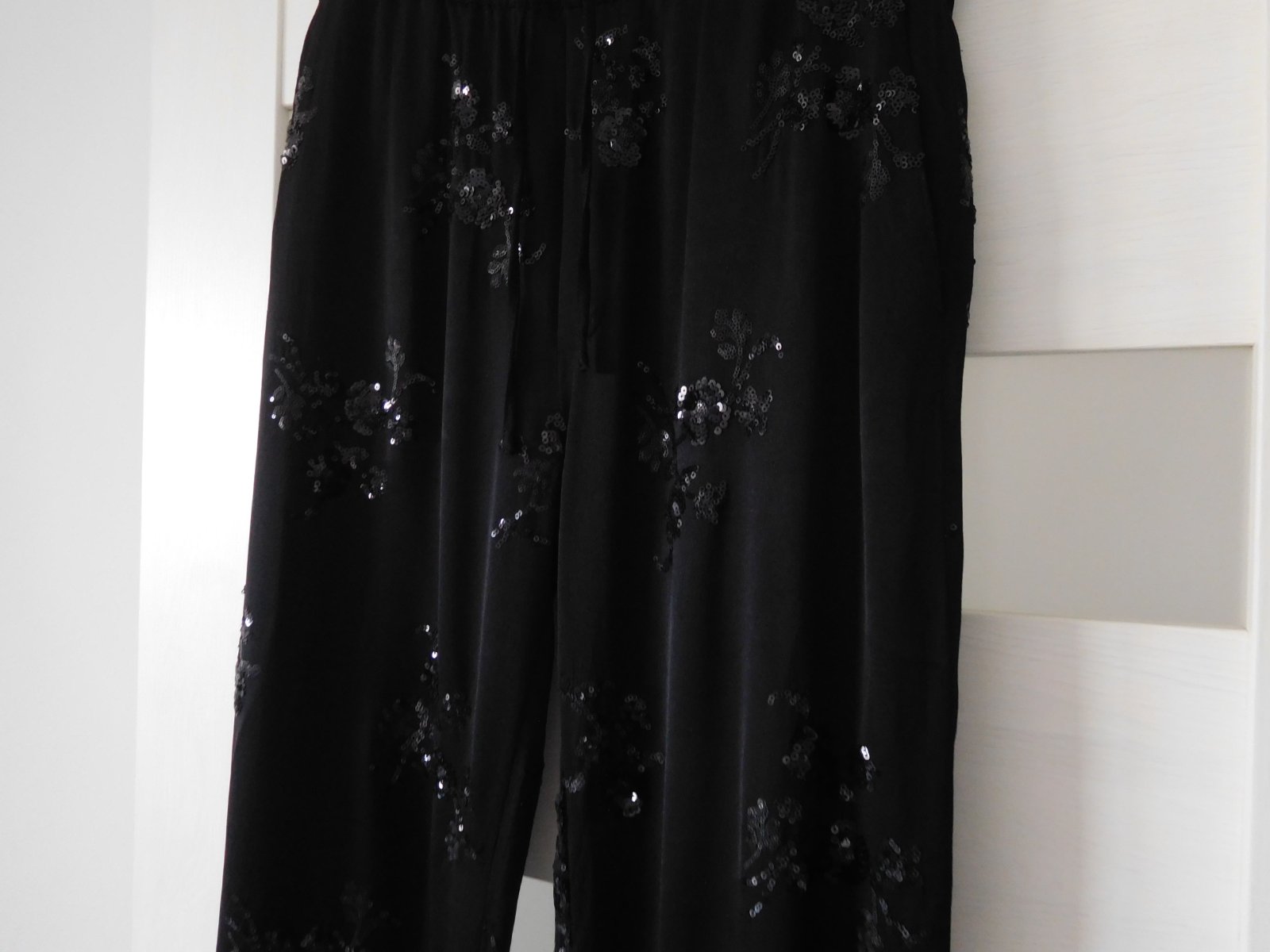 Nohavice sú z pružného satenového materiálu zdobené štrasom viď foto,