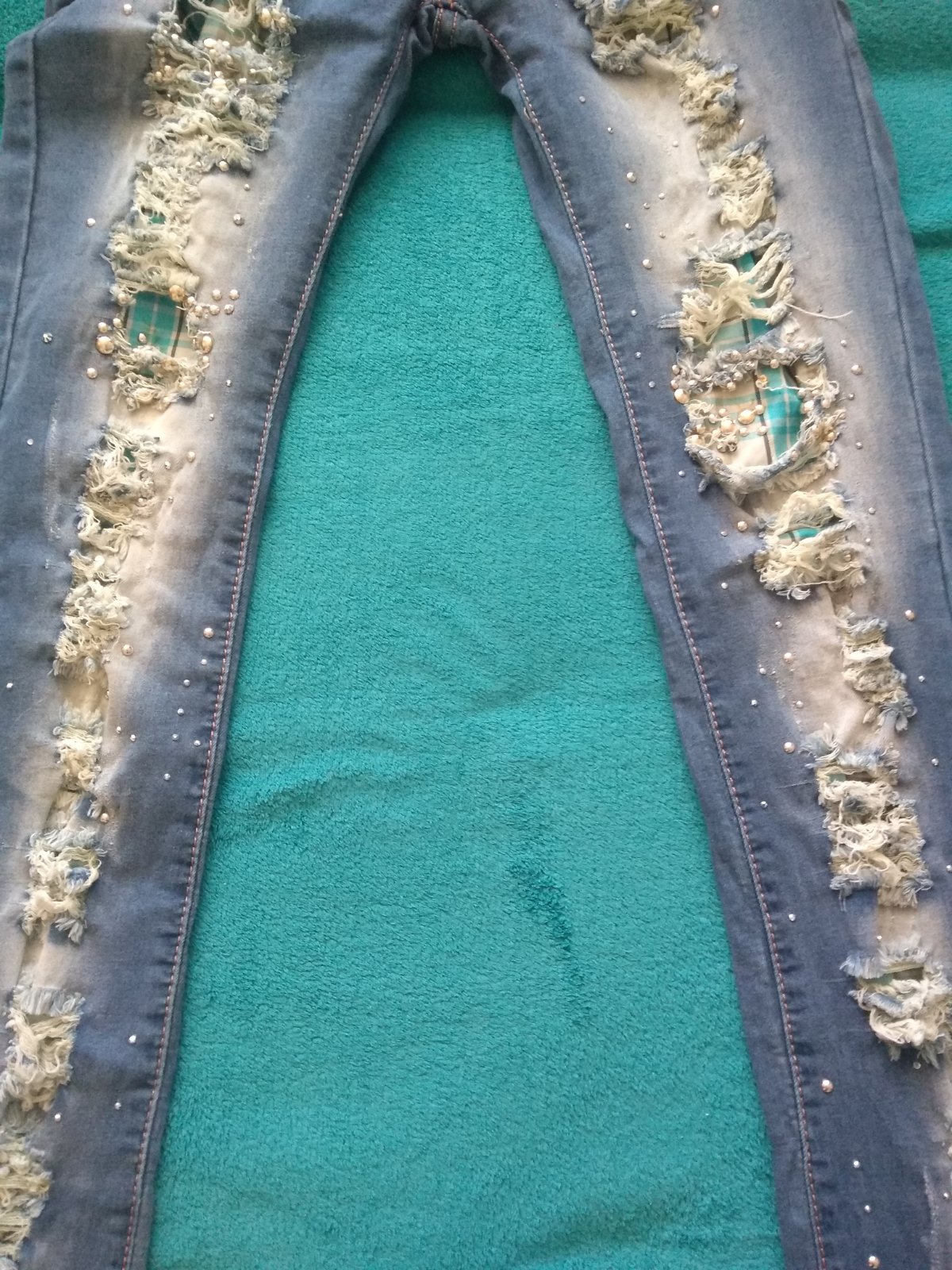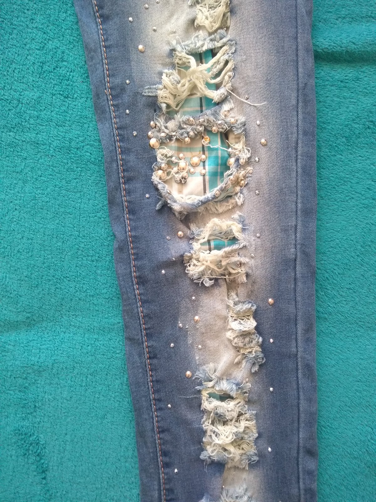 Dámske originálne jeansy s vyšívanými aplikáciami, imitáciami. Veľmi trendy aplikácia motívu kvetov originálne dopĺňa dobre padnúce jeansy Veľmi originálny kúsok, každý model je originál Velkosť 3...