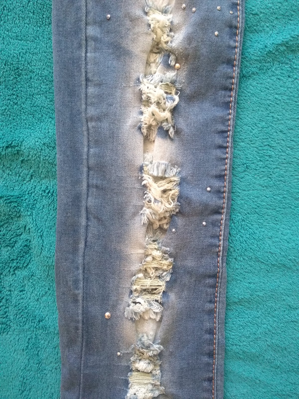 535- rifle jegging, pás 34-49 cm, stehno 28-38 cm, d-99 cm, natrhnuté putko, preto taká cena, váha 382 cm,