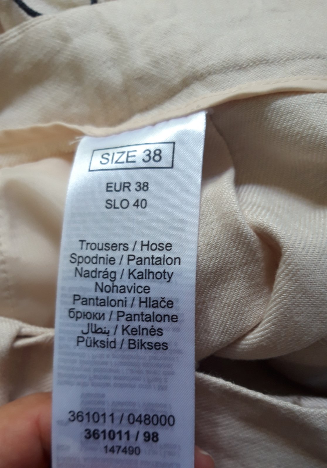 Pekne sedia, super stav. Rozmery: , pás 39(x2), boky 50 (x2), dlzka vonkajší šev 95, vnútorný 72 cm.