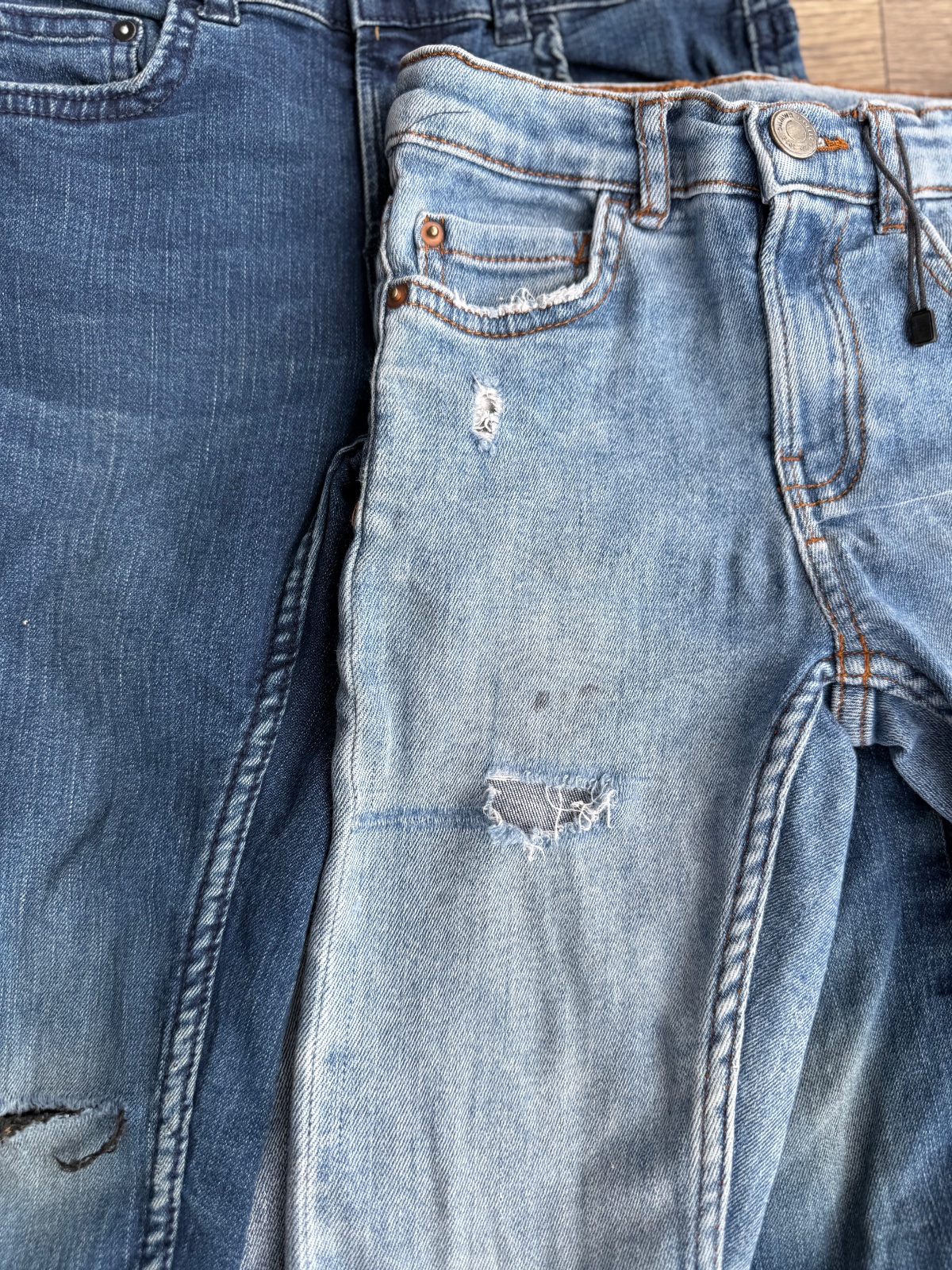 7€/ks dĺžka cca 79-82 cm S dierou na kolene na foto vpravo 5€ Sivé vľavo predané