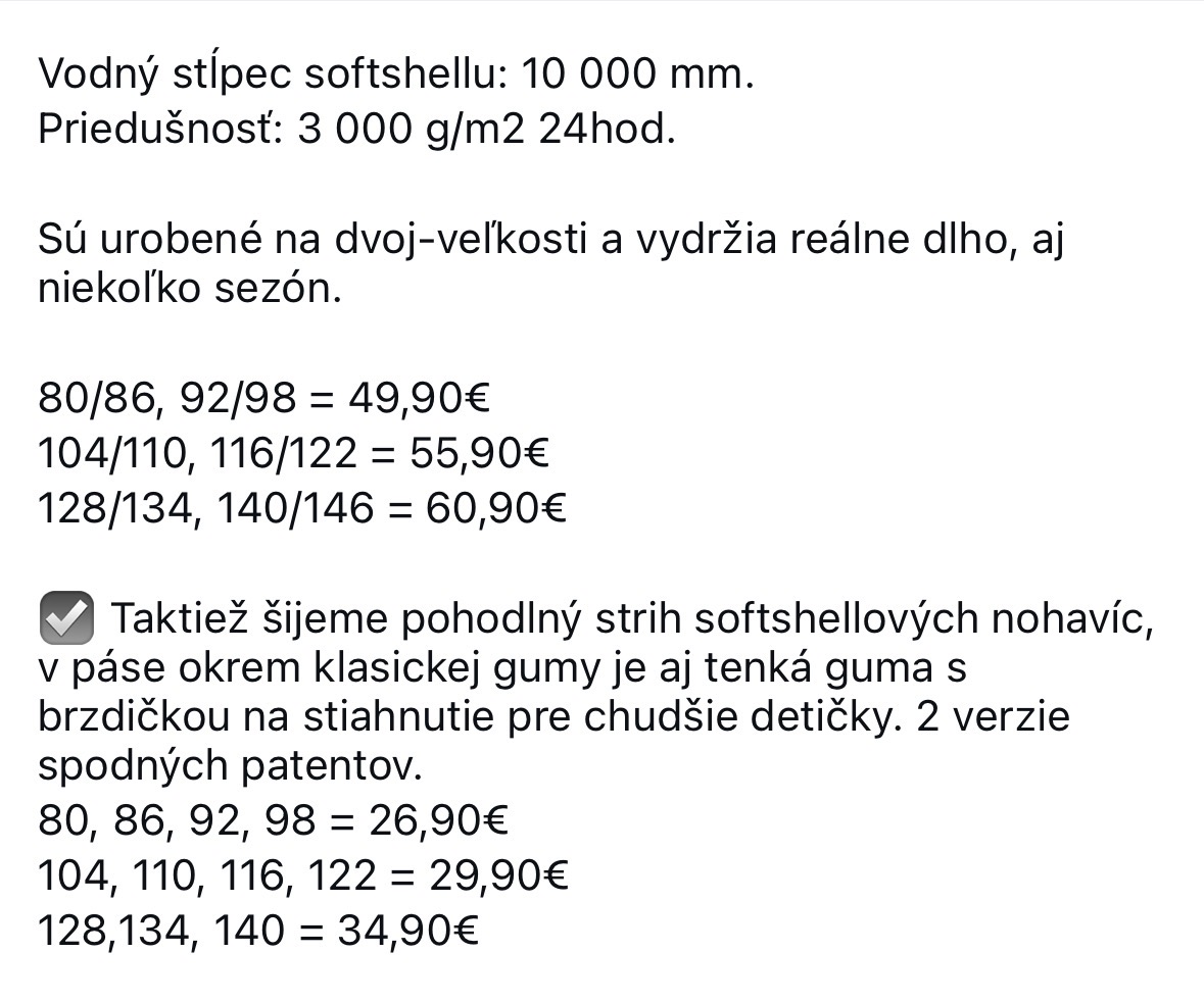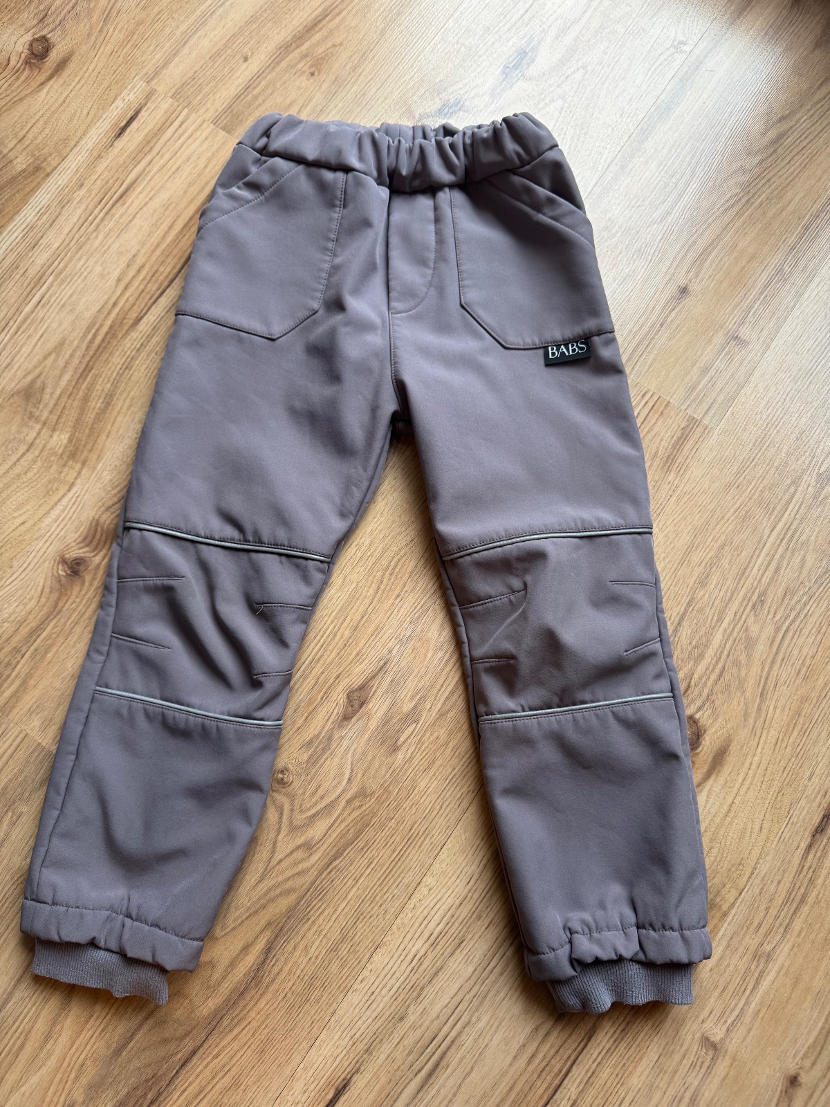 Teple softshelove nohavice, bez poškodenia, veľkosť 116 ale sedia aj na vecsie deti . Pc: 34