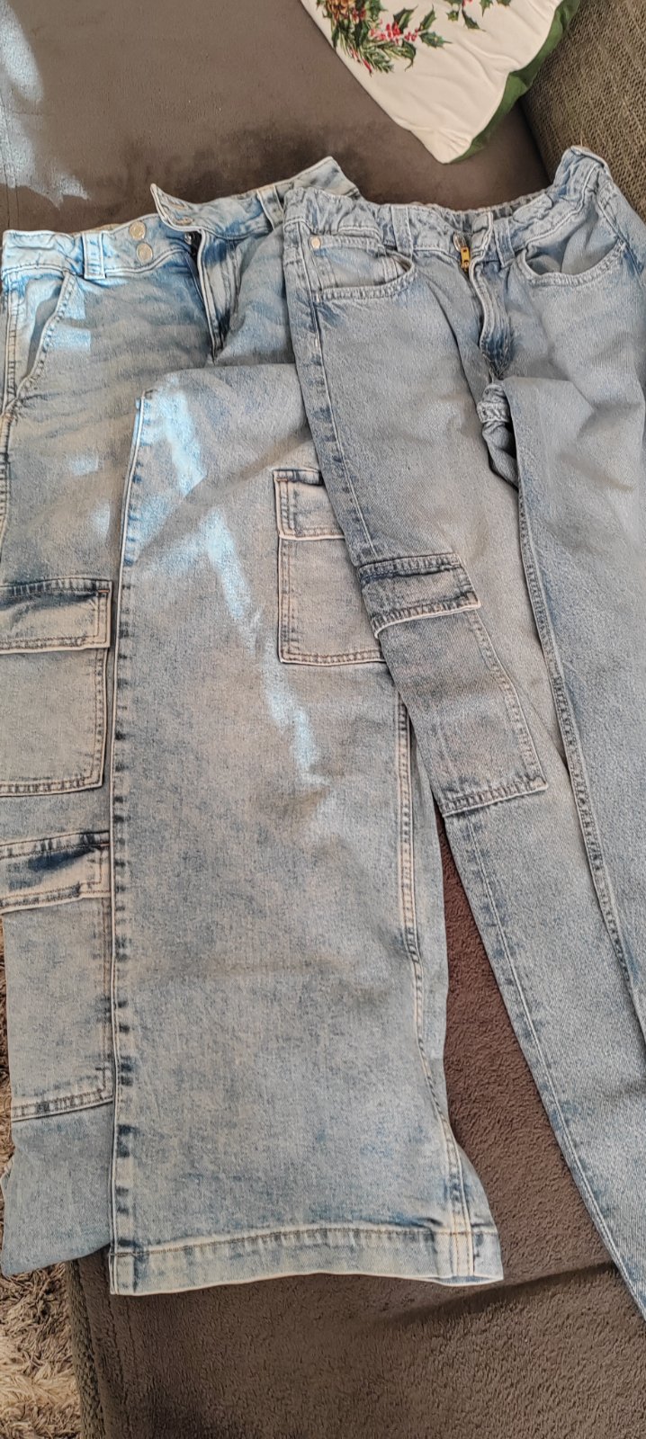 Pekná bledotyrkysová farba, na fotkách žiaľ nie je vidieť. Dcéra ich vôbec nemala oblečené, ale od nova majú žlté fliačiky na zadku (zohľadnené v cene), ale ku dlhšej tunike, alebo tričku v pohode...