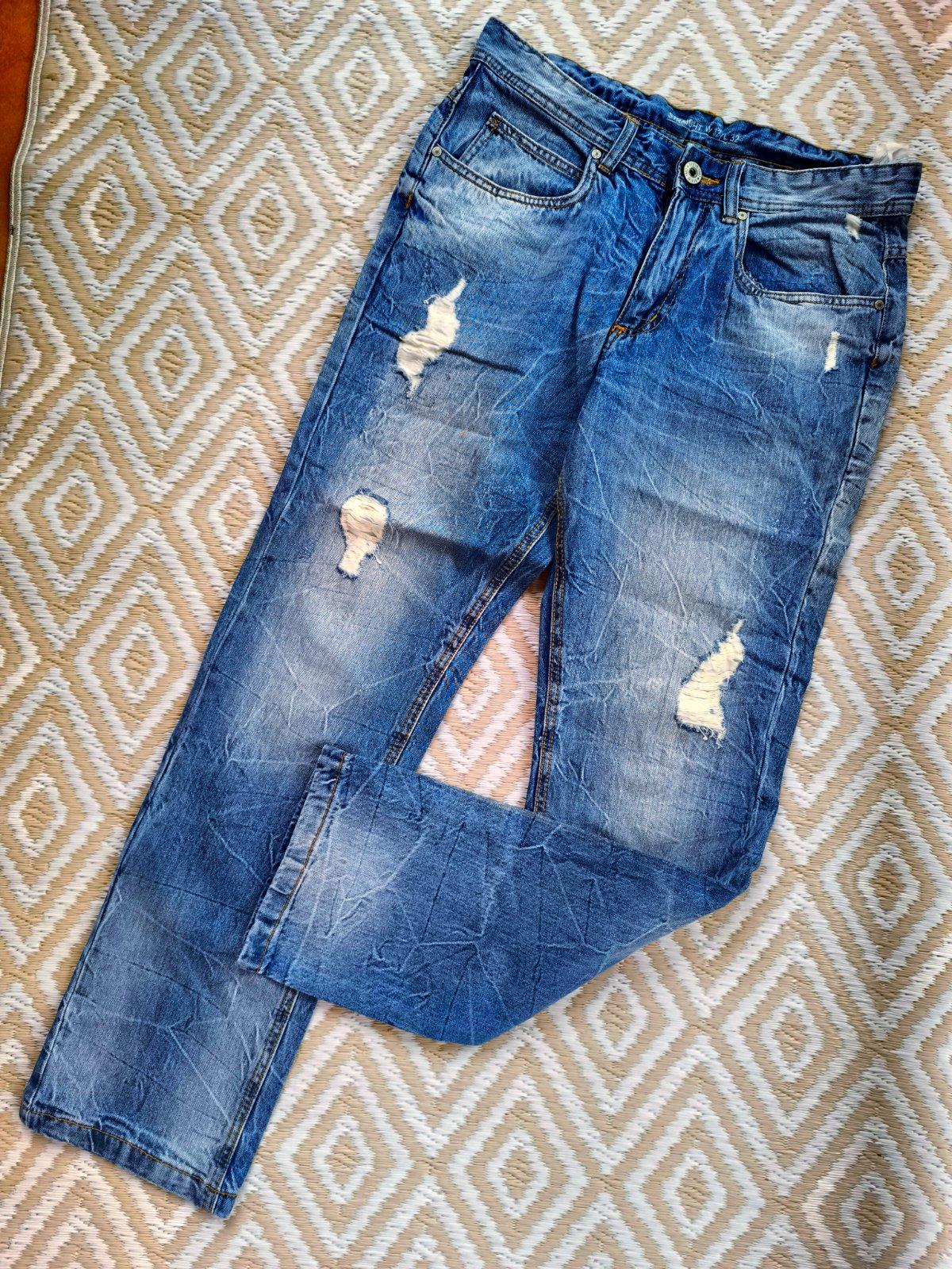 Pekne pánske "dierované" rifle, raz oblečené, stav ako nový, bez poškodení.