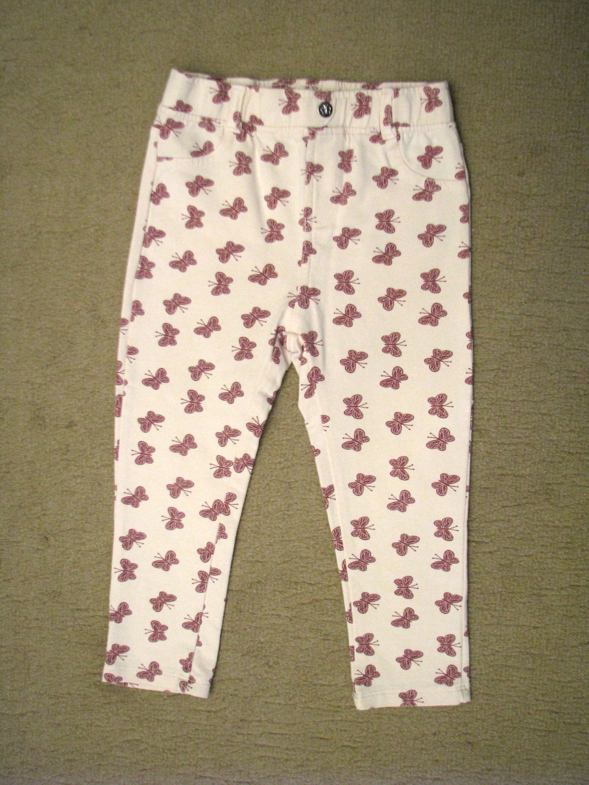Teplákové nohavice svetlej žltej farby, so vzorom hnedých motýlikov. Hrubšia teplákovina, viď. detailná fotka. Výborne zachovalé, bez poškodení. Veľkosť 92 cm, na 18 - 24 mesiacov. V prípade záujmu premeriam.