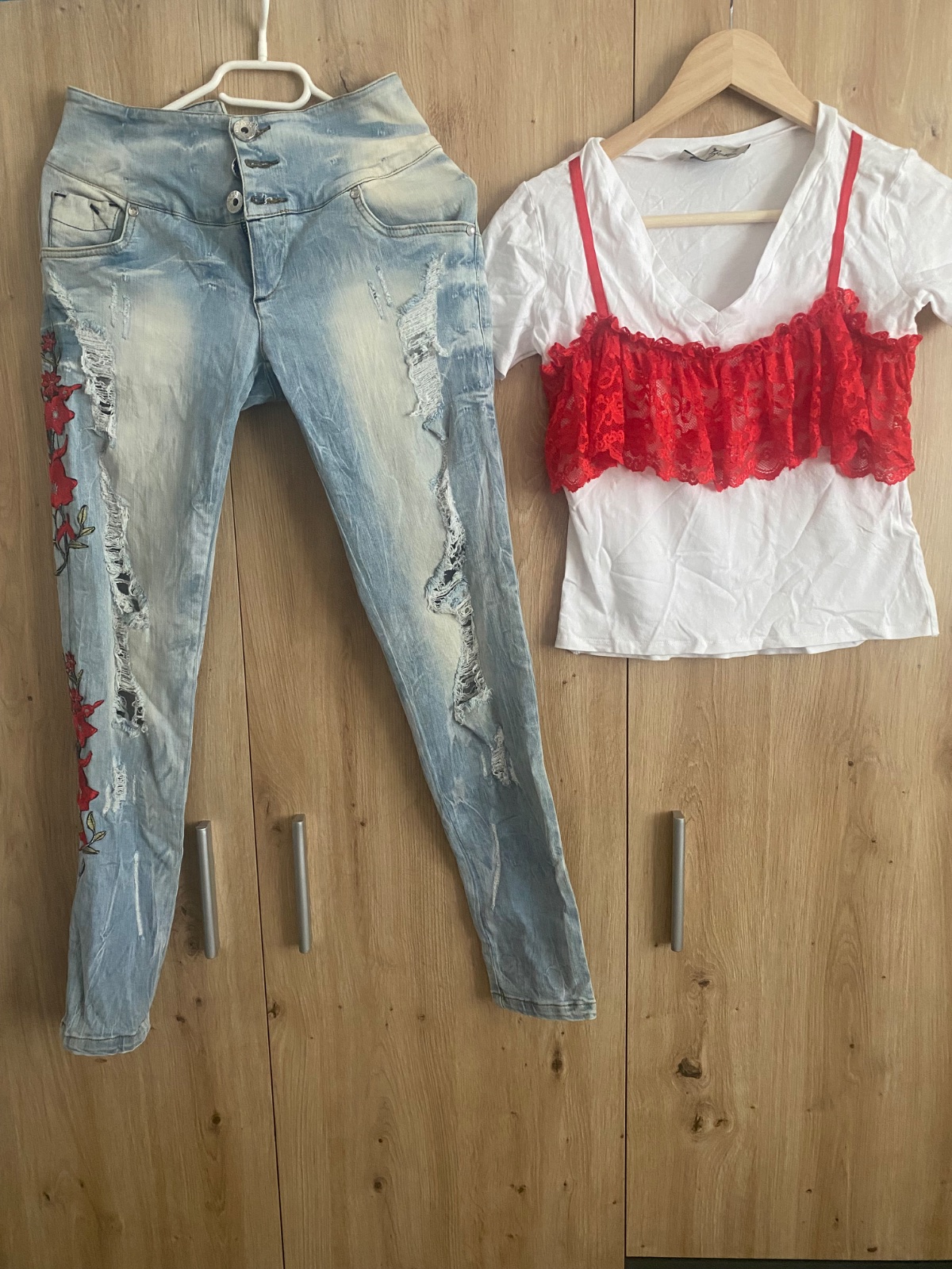 Predám rifle visivane nenosené elasticke z topom ktorx ma visitu červenú čipku pre bližšie info ma kontaktujte na meil motylik223@azet.sk