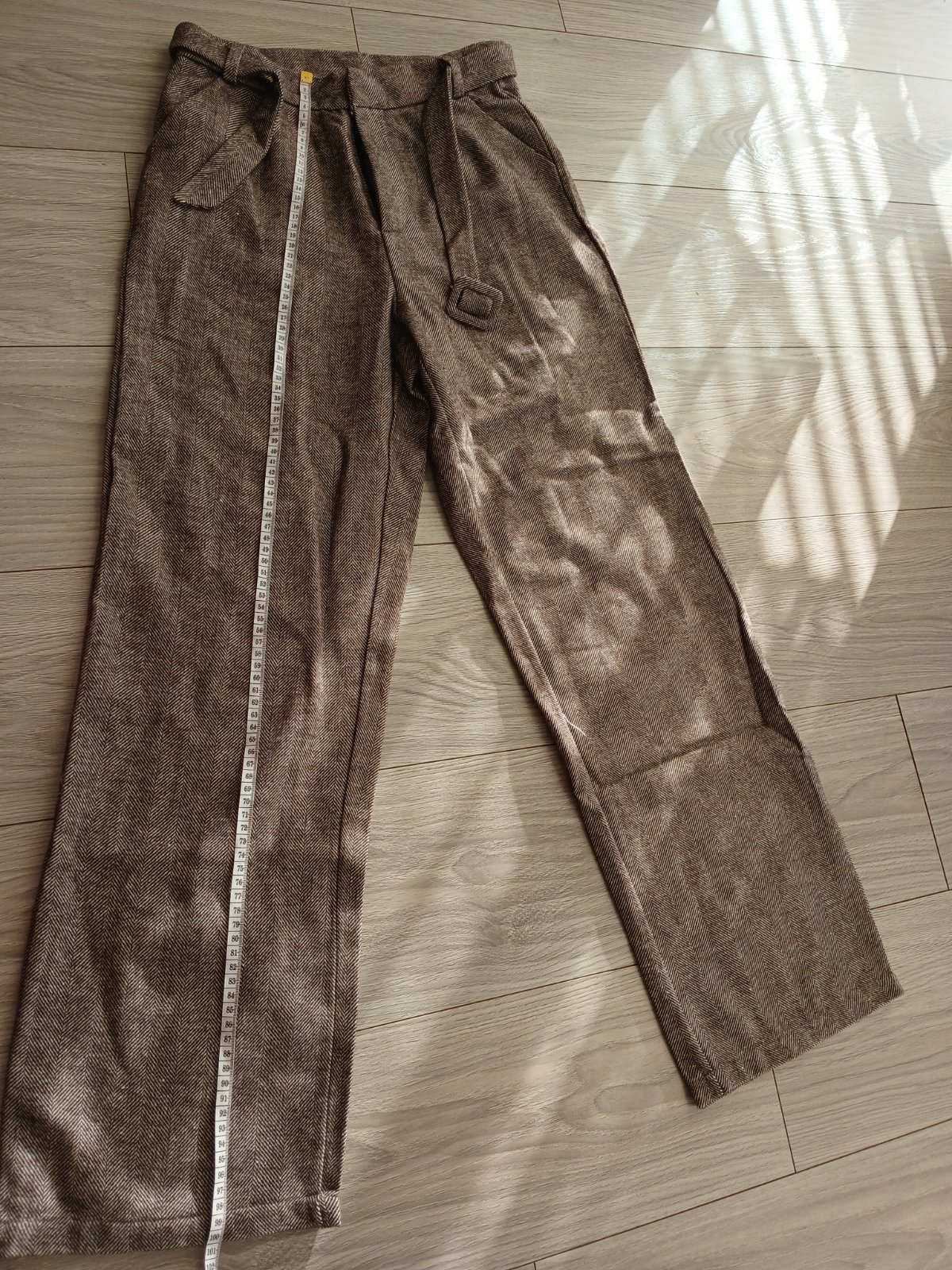 Pekne nohavice, malo nosene, bohuzial kupovane pred tehotenstvom a uz su mi male. Na kolene maju ale flak od make-up, nie je to moc vidno vzhladom na vzorovanu latku posledna foto - poskodenie zohl...