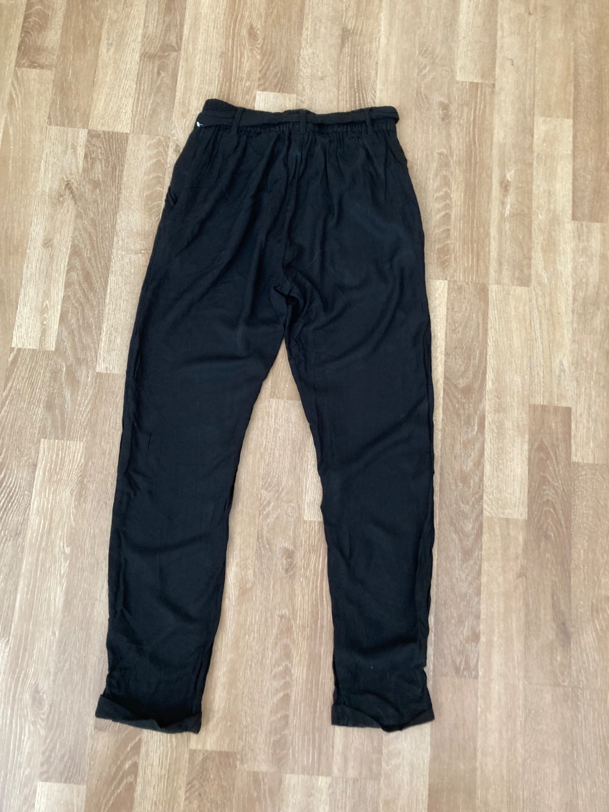 Ponúkam málo nosené, veľmi pohodlné, dievčenské nohavice. Sú z mäkkého materiálu, v páse na gumu, dole do patentu. Sú ľahké, skôr teplá jar/jeseň alebo leto. Majú vrecká. Farba je čierna, s drobný...