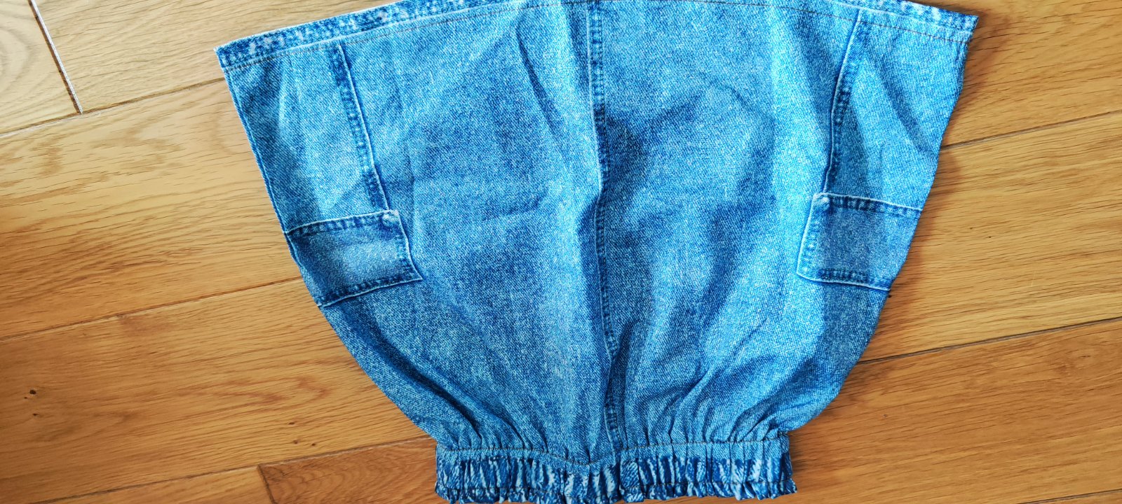 Dievcenske rifle na traky zn.Denim, vel.6-7r. Traky sa daju nastavit na rozne dlzky, na boku gombiky. Nosenie uz vidno, ale stale nositelne. Cena + posta