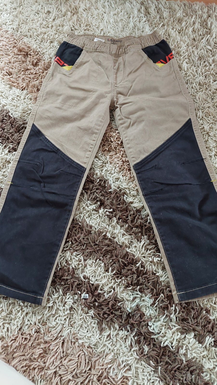 predam nohavice kremovej farby znacky adams dlzka nohavic su 75 cm a na 8 rokov je napisane cena 3 euro a cierne nohavice 122 cislo znacky pallomino cena 3 euro