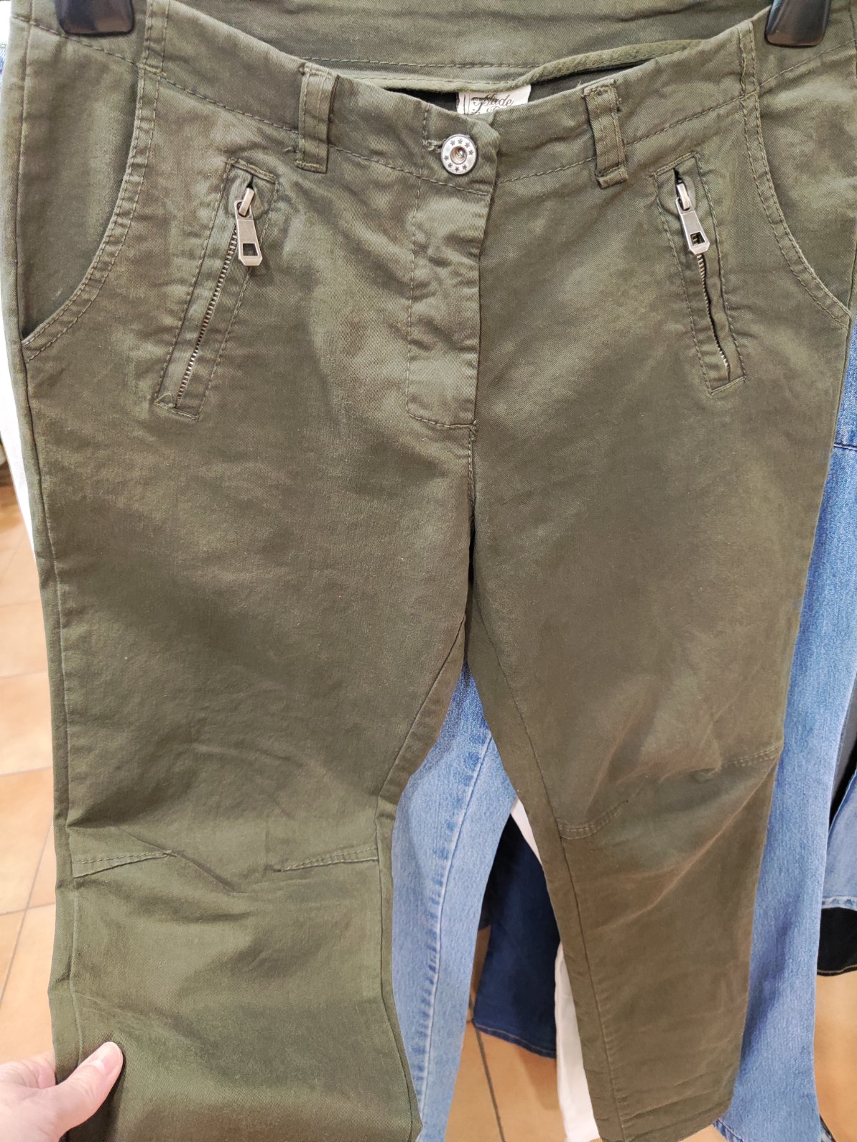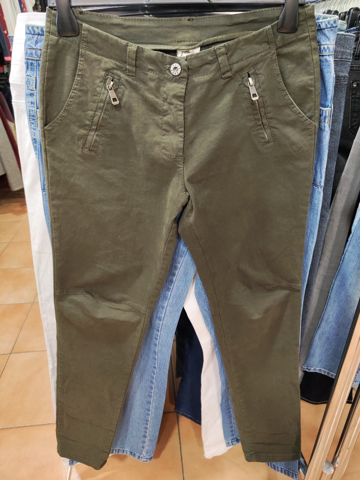 Pružné riflové nohavice khaki veľ. 40