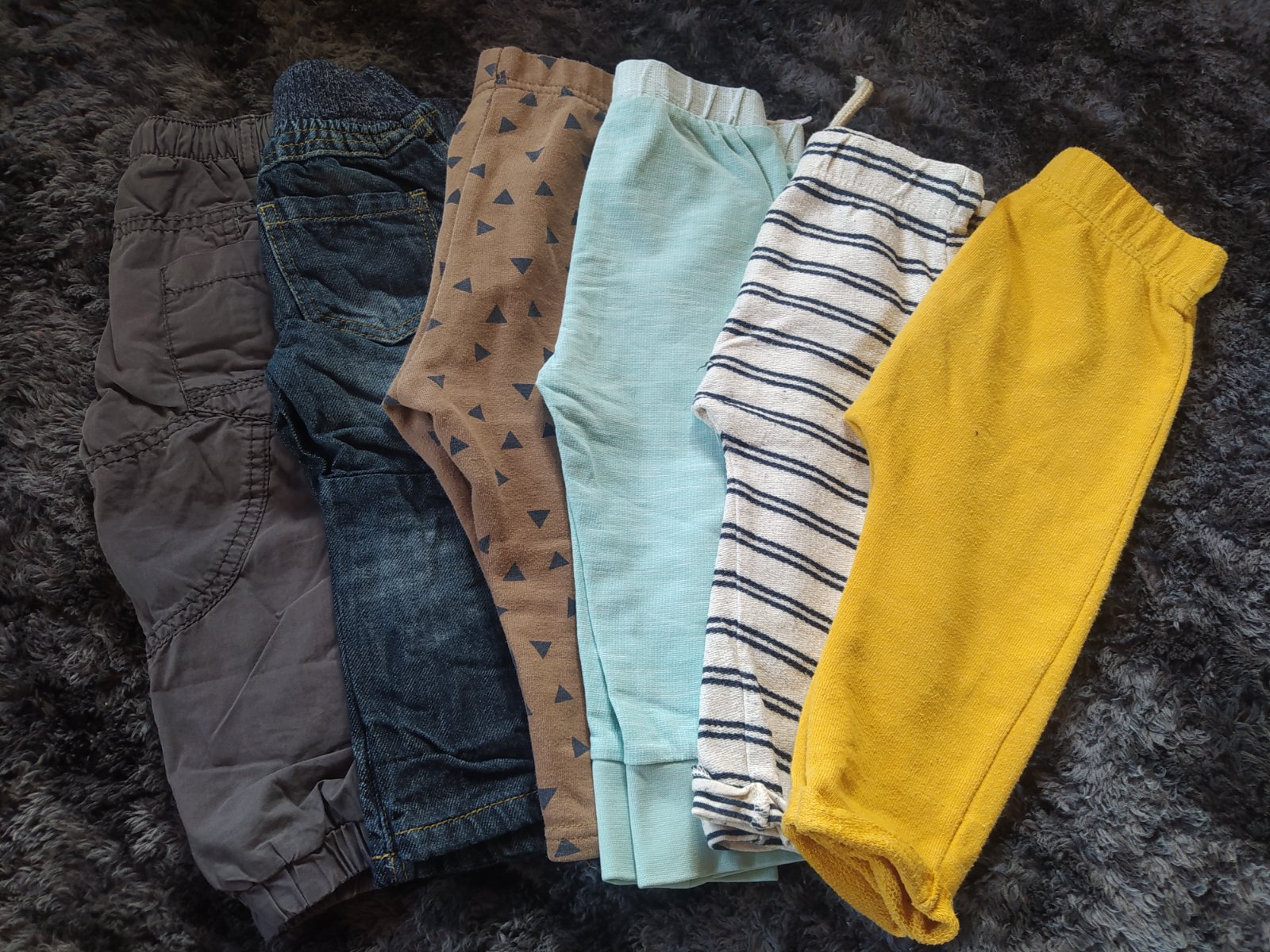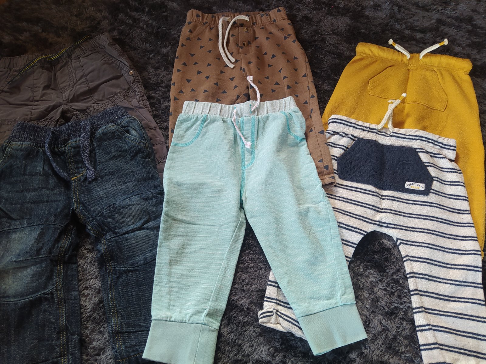 len pár jemných žmolkov od prania v 100% stave. Nakoľko tepláčiky majú na spodku gumičku nespadnú pod topánočku a dajú sa nosiť aj skôr.