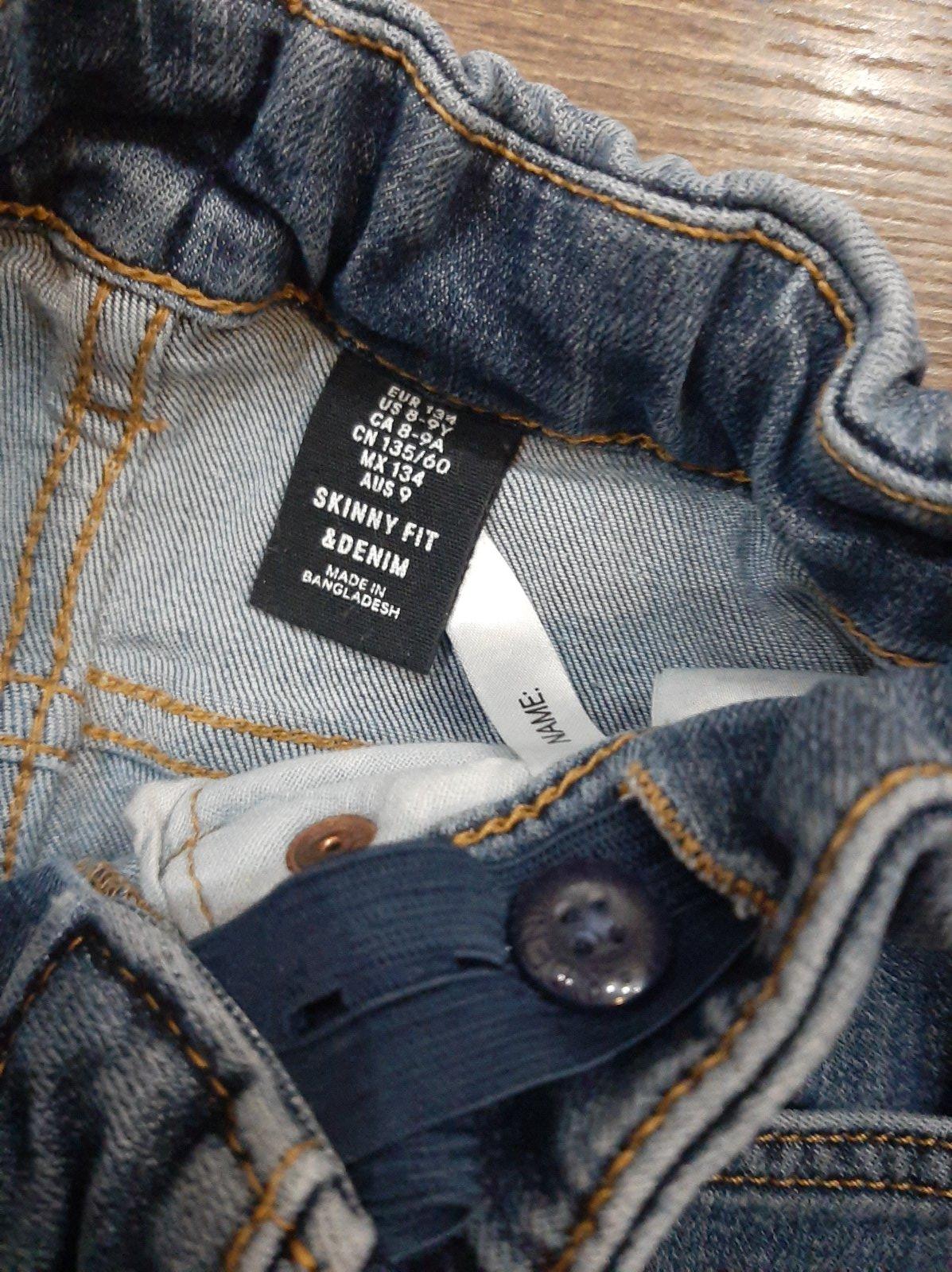 Predám rifle veľ. 134. Stav zachovalý. Regulovanie šírky v páse šnúrkou. Majú vyšší pás, teda pri sedení nevybieha zadná časť chrbta. Kupované v predajni H&M.