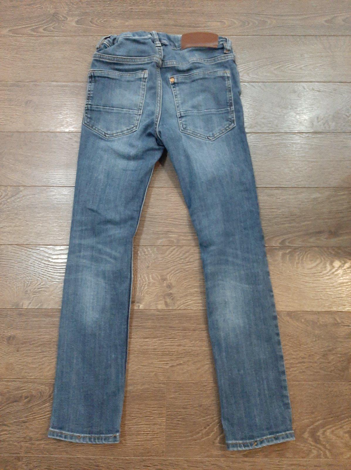 Nosené. Veľ. 134. Upozorňujem na chýbajúcu šnúrku (gumka drží pevne), fliačik na kolene (pozri posledné foto). Sú strihovo širšie.