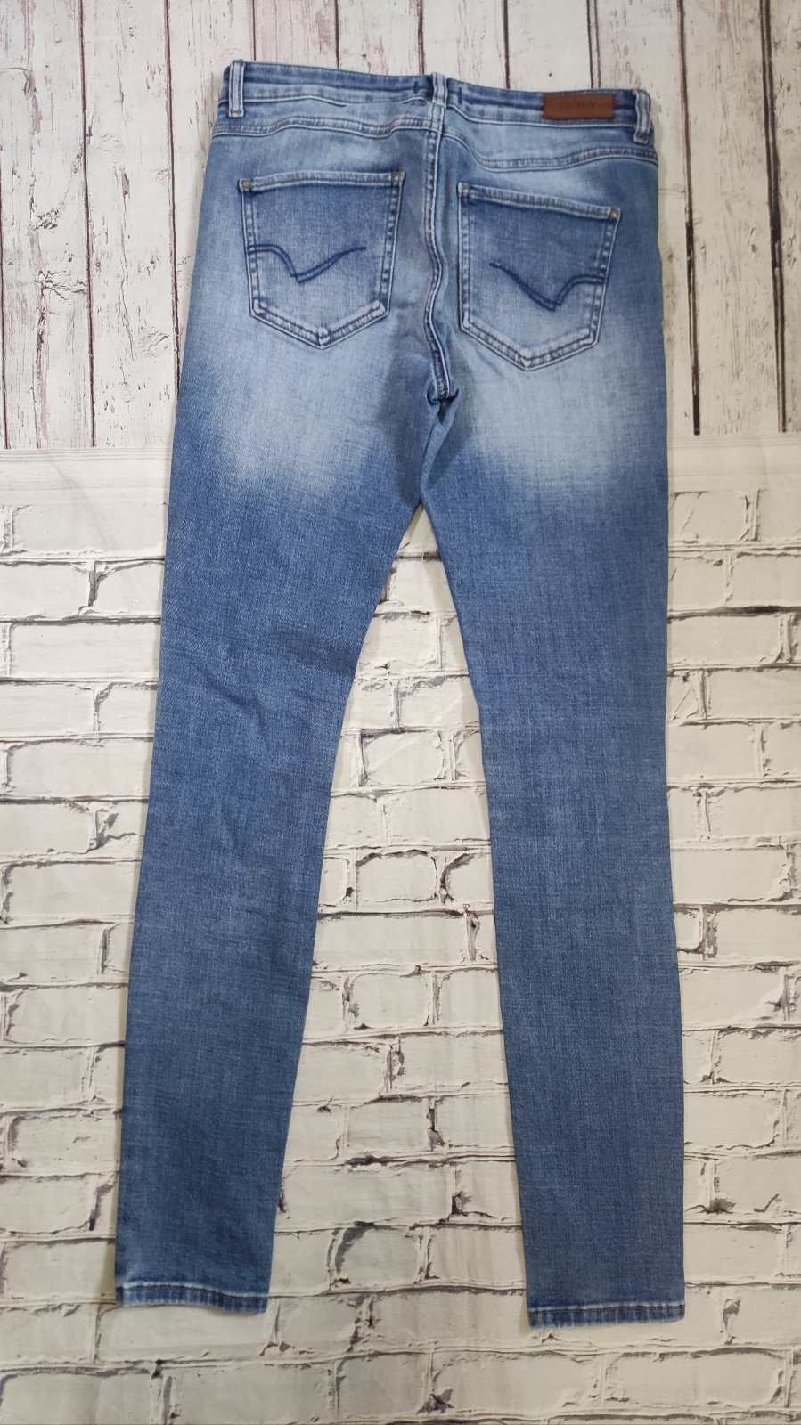 Málo nosené. Pekne tvaruje postavu, elastické, mne moc úzke. Predĺžený strih. Na jednej fotke na porovnanie zobrazujem podobné rifle značky FB sister, farba je ešte bledsia, materiál trochu tvrd...