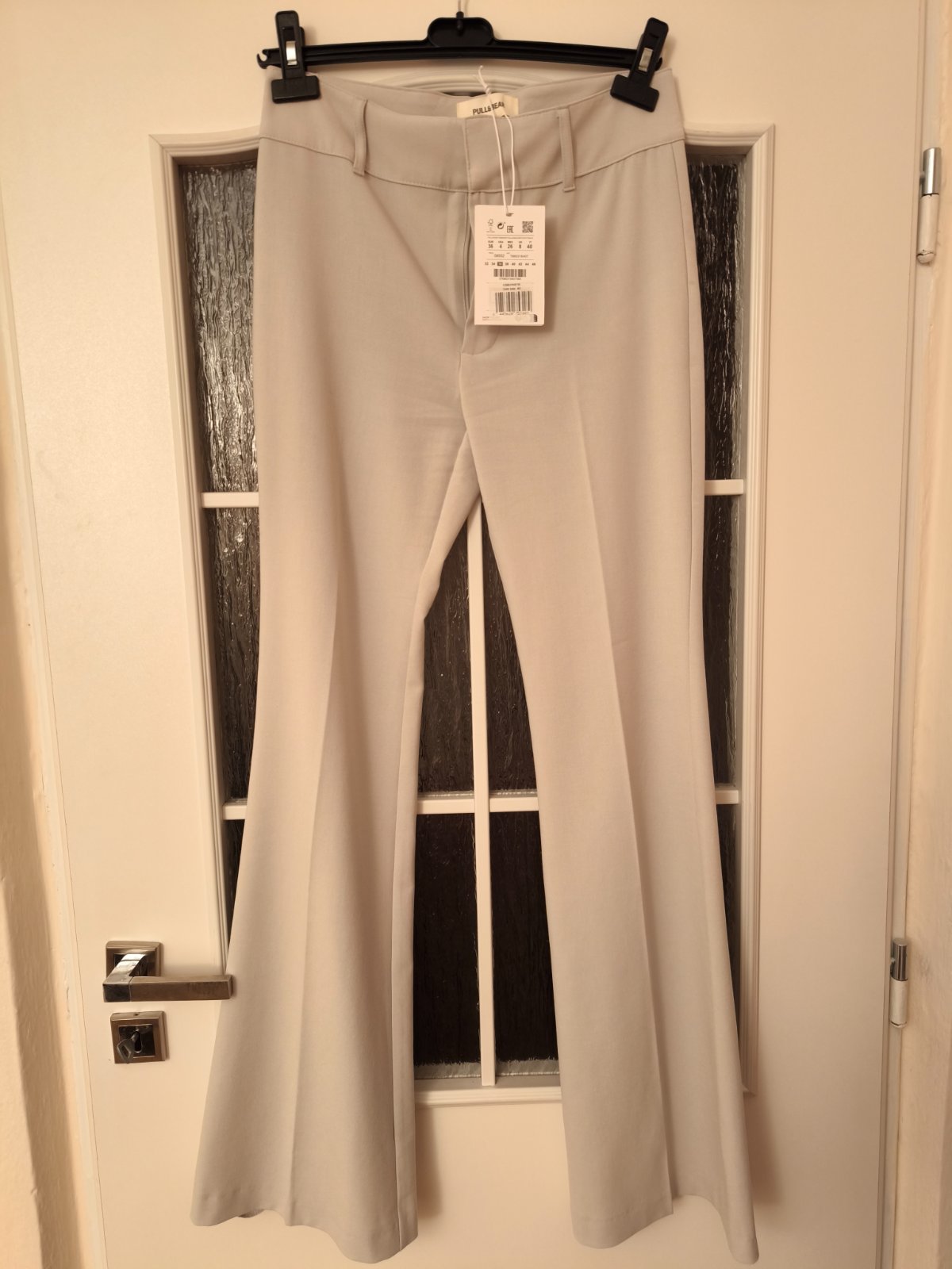 Kremove zvonove nohavice. Velkost sedi.