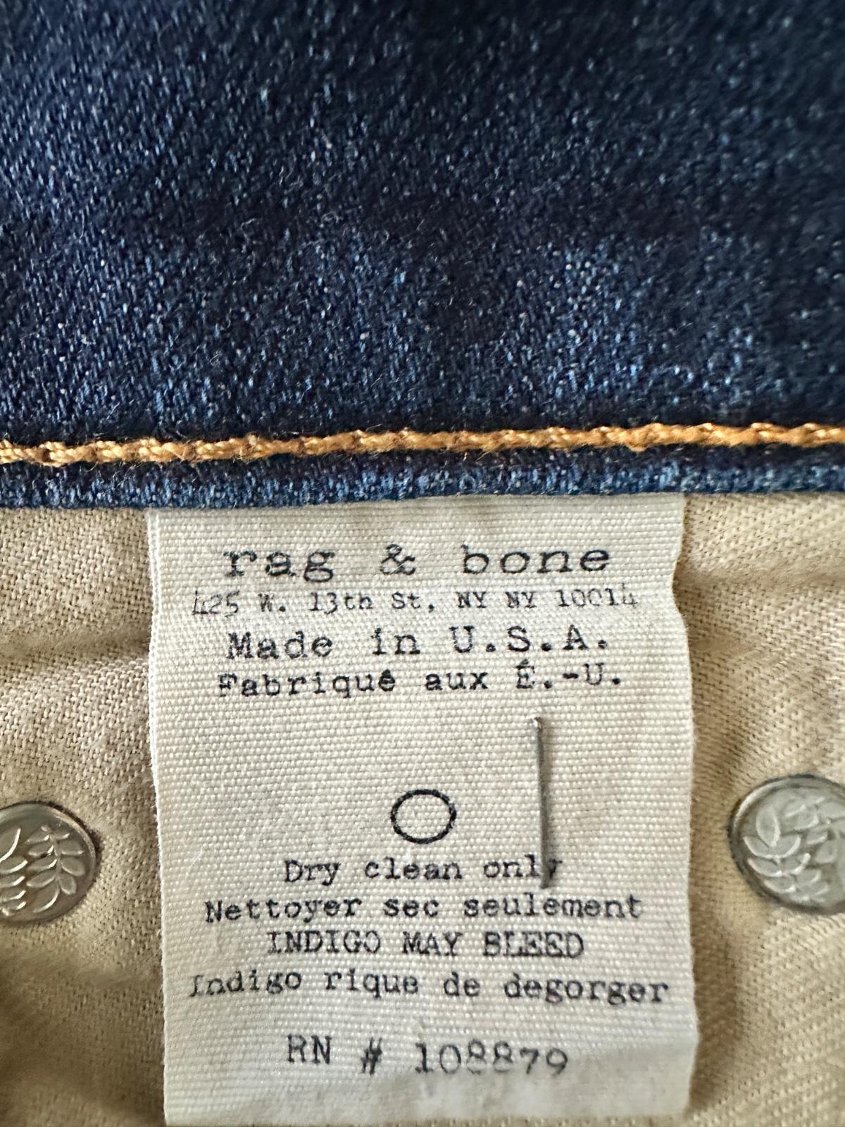 Jedinečné kvalitne riflíky značky Rag & Bone, ktorá kombinuje britskú klasickú strihovú prácu s moderným mestským štýlom New Yorku, čo vedie k minimalistickým, ale kvalitne spracovaným kúskom s dôrazom na detaily. Vyhýba sa trendom a zameriava sa na autentickosť, kvalitu a nadčasový dizajn.