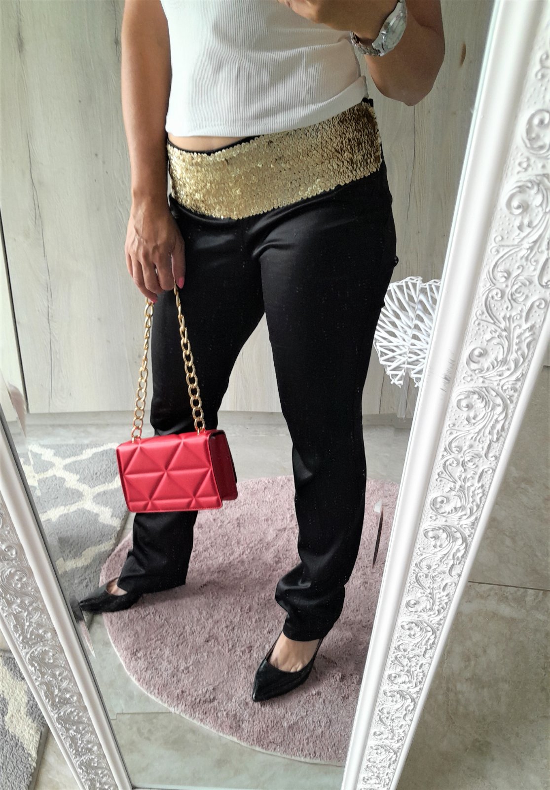 nevymieňam!!nosené,písaná veľkosť 42-materiál akoby satén,vpredu na páse vyšité flitre,na boku zips,nie sú elastické,sem tam akoby "záder"alebo ako to nazvat..viď foto..dĺžka 105cm,pás 2 x 40cm,boky 2x 47,5cm,predný sed 19cm,zadný sed 27cm,60%polyester,37%cotton,3%elastan..pc-29 eur..kuk aj na iné moje inzeráty