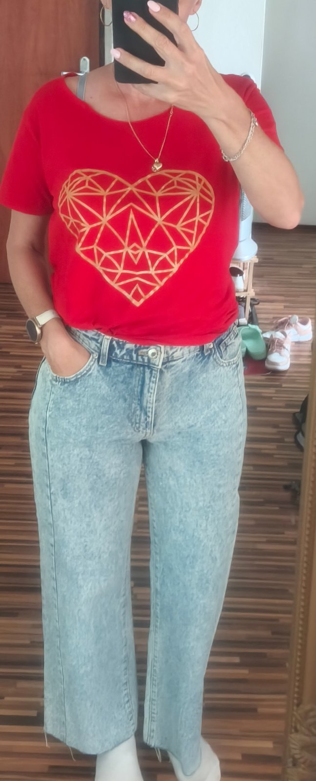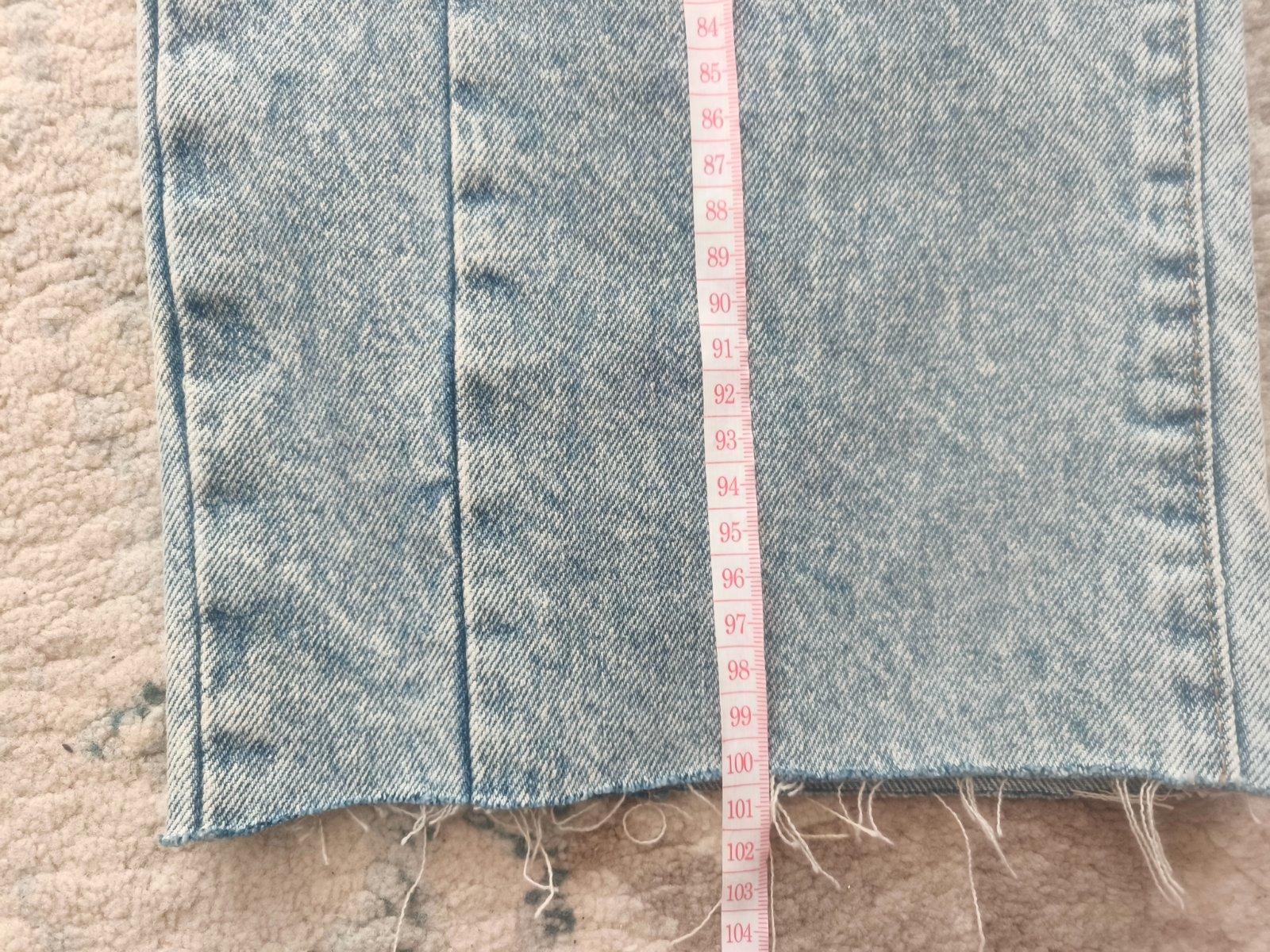 Veľkosť písaná na rifliach nesedí, je tak M. Dĺžka na foto aj šírka pásu.
