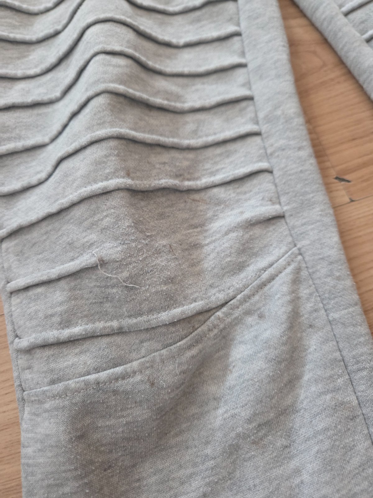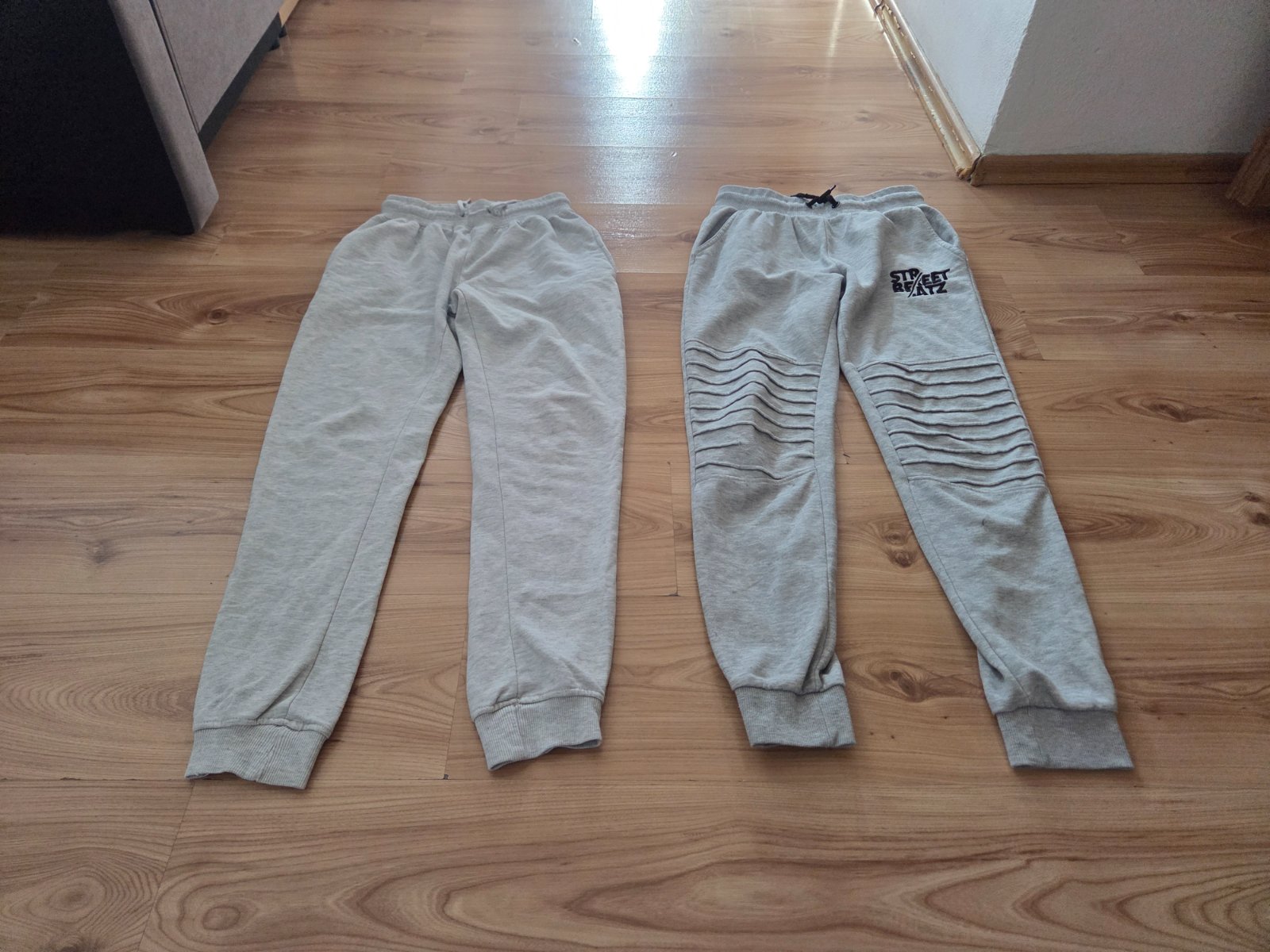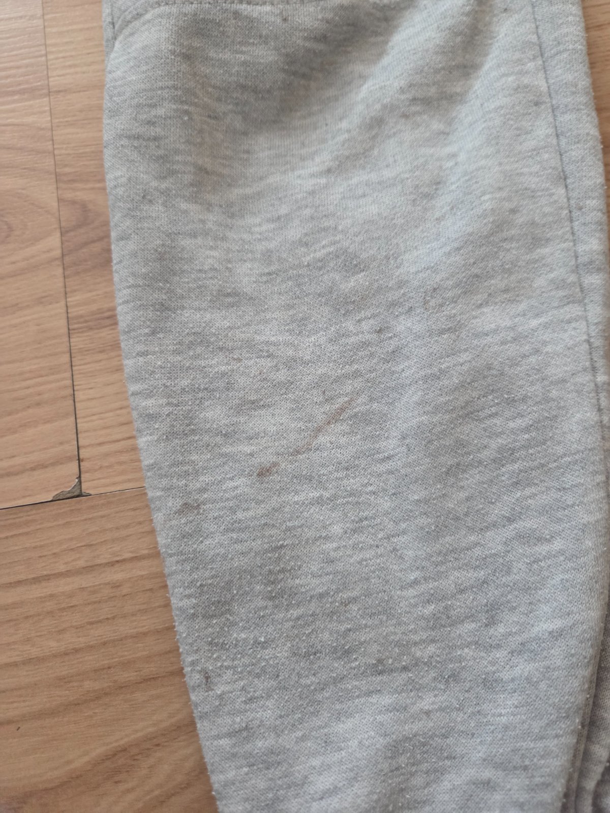 Tepláky sú nosené majú viacero fľakov ale sú bez dier možno pôjdu oprať cena spolu za 2ks 1.80e