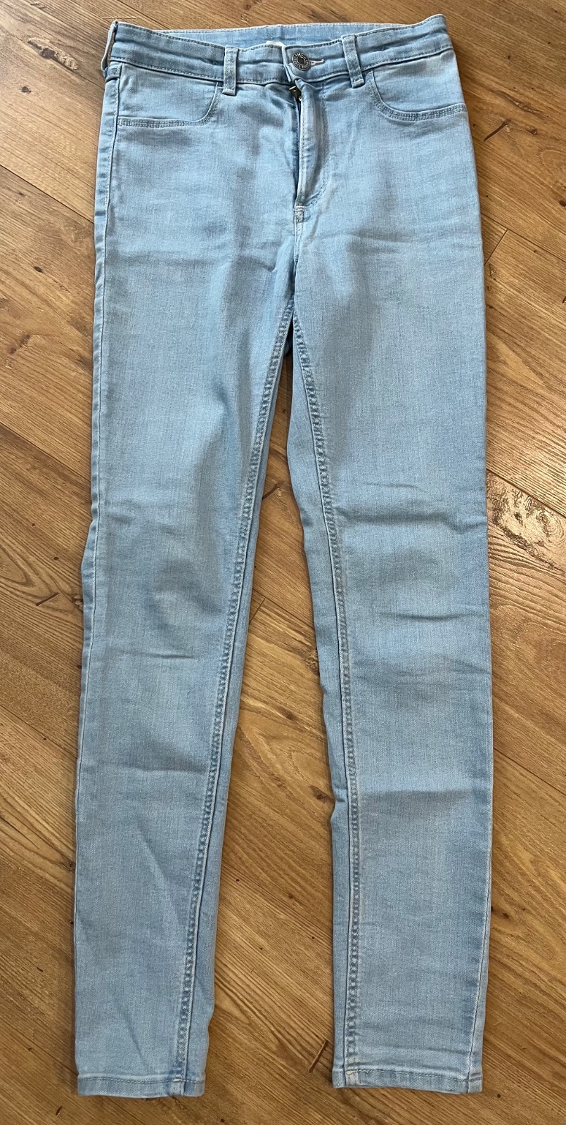 Posúvam velmi pekné riflovky s kamienkami. Pár kamienok chýba ale nevidiet pri nosení stále velmi pekný. Odporúcam.
