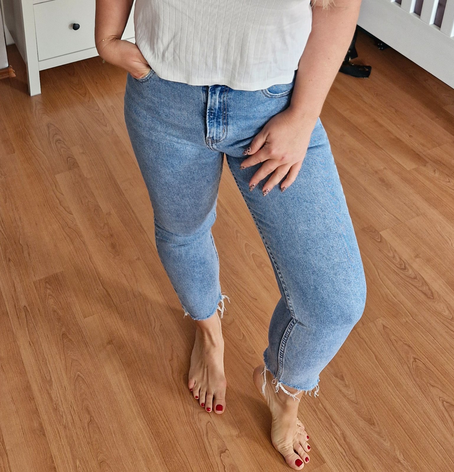 Kratsi rovny strih, mne su male, velkost pisana 30/32