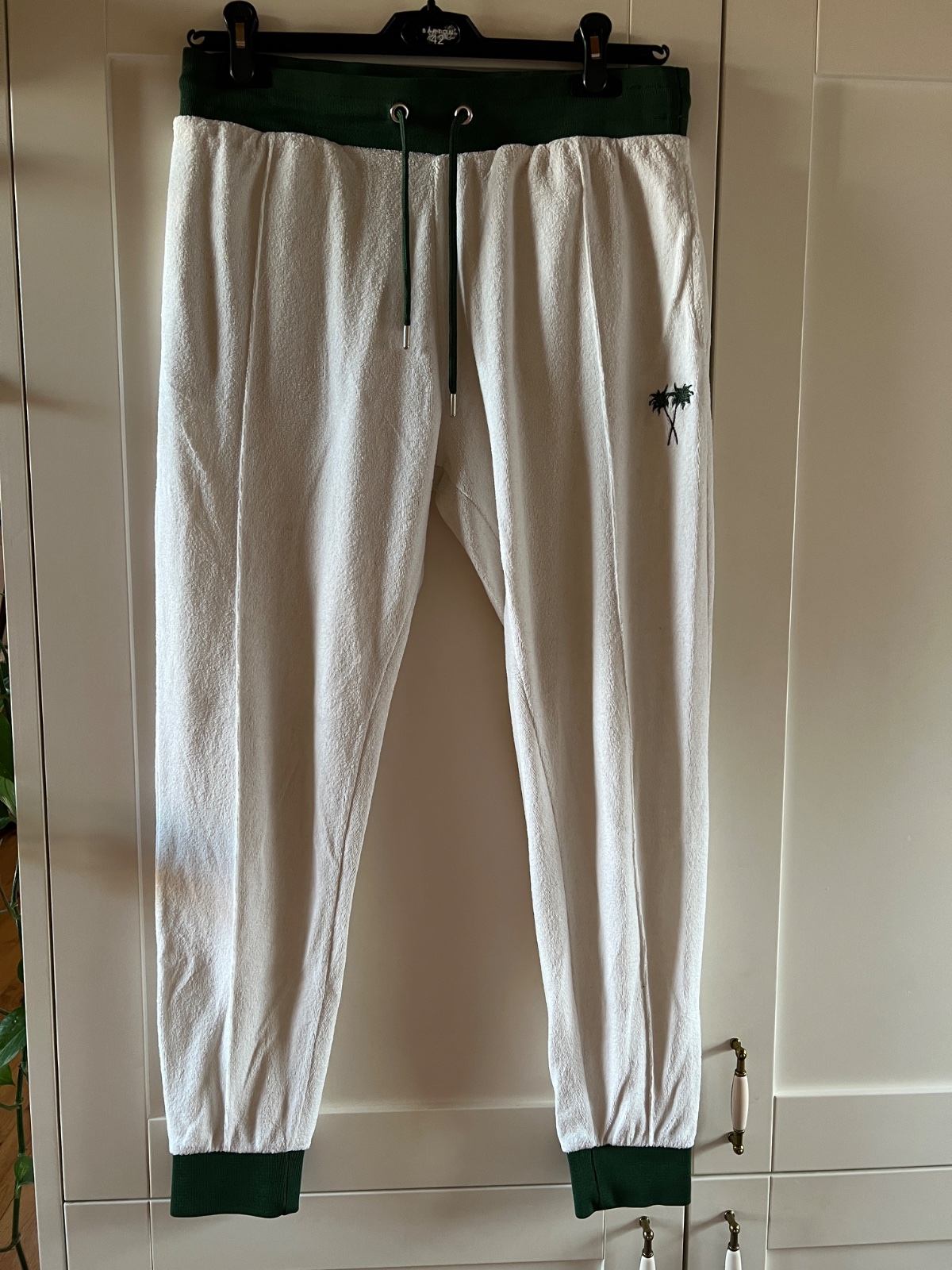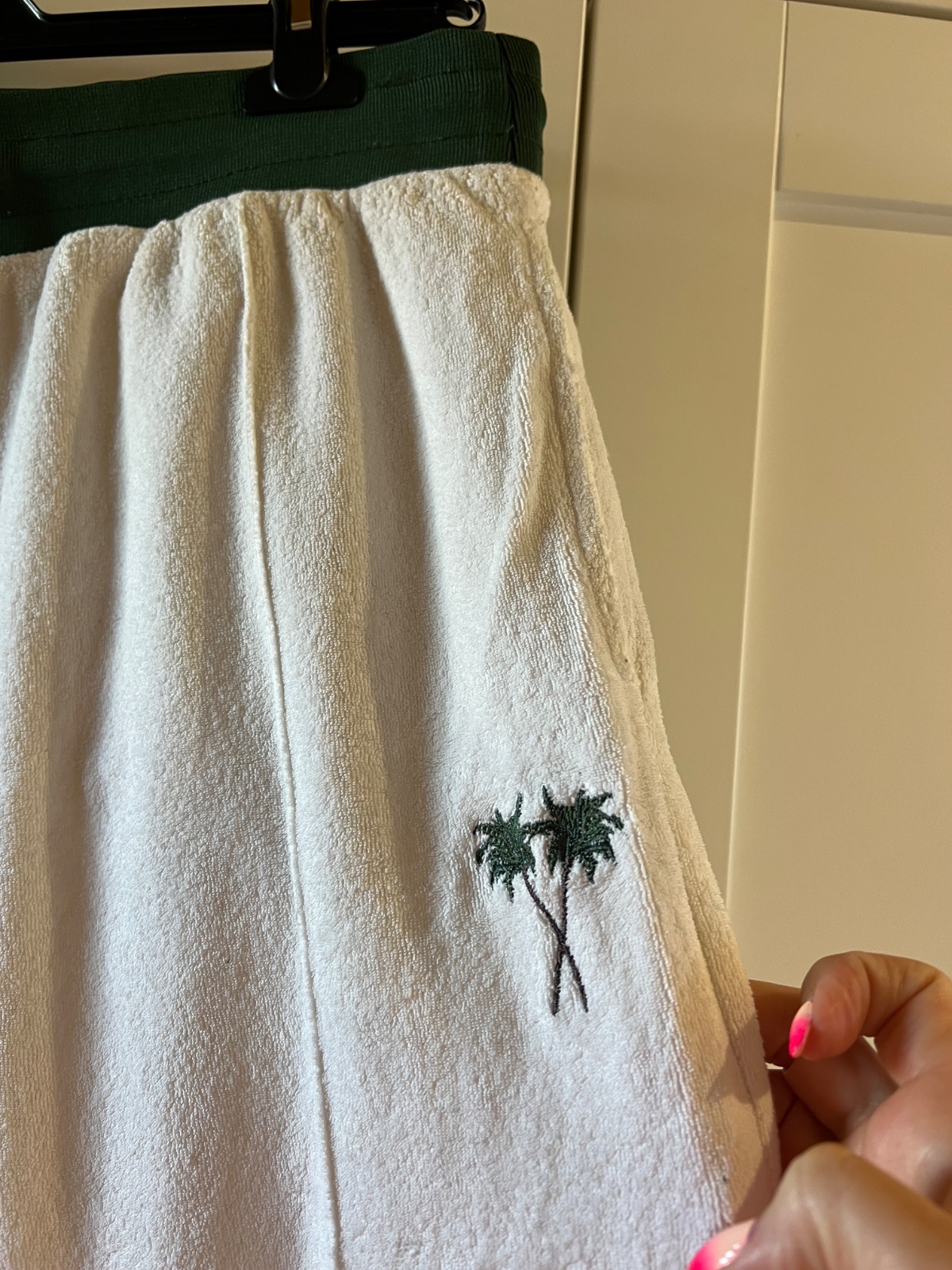 Top stav, materiál akoby froté, biele s tmavozelenými manžetami