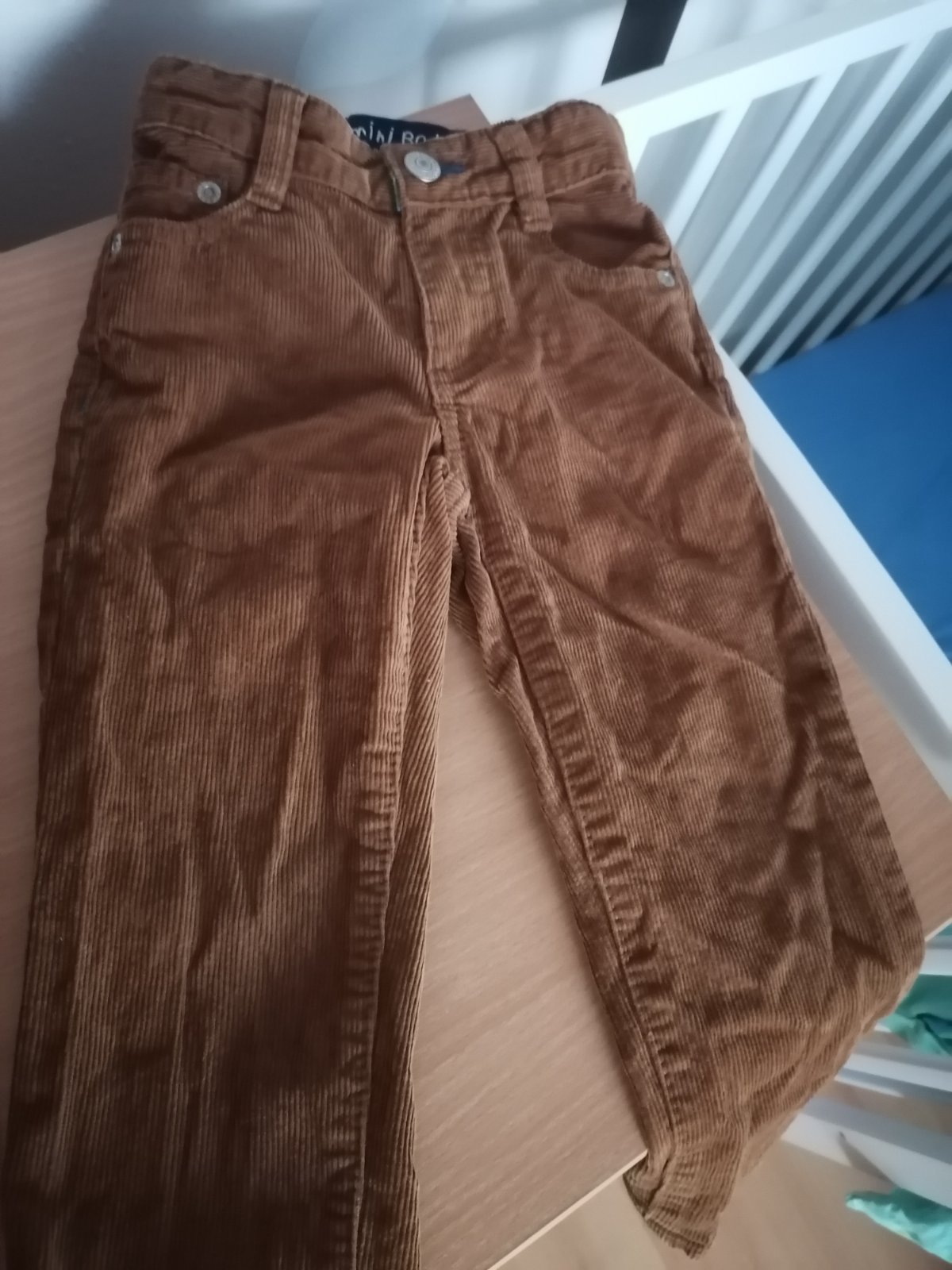 Pekný zachovalý stav, krajšie ako na foto, nešlo mi dobre odfotiť. Vytiahnuté z vrecia, tak trochu pokrčené, ale inak sú určite pekné. Veľkosť uvedená 2 roky. Kuk miery. V páse regulácia gombíky.