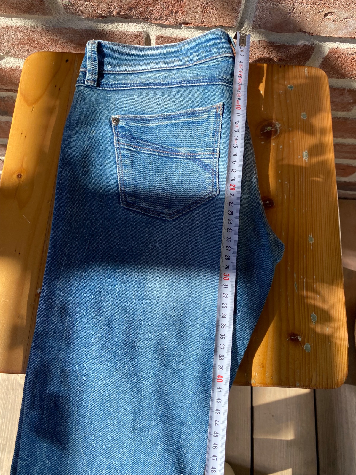 Krásne nové rifle s visačkou a vysokým pásom. Sú vysoko elastické, krásne obopnú a stiahnu postavu. Veĺkosť uvedená XL, ale skôr S-M, možno menšie L. pás v klude =:34cm ( veĺa sa natiahne) šírka h...