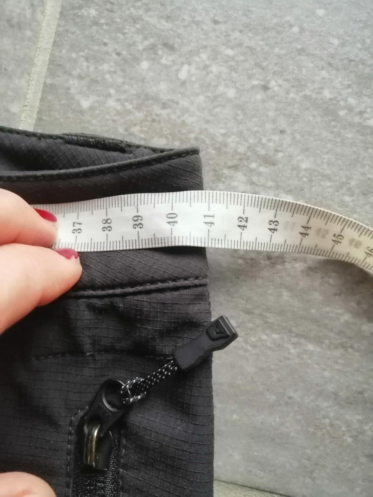 96/100, spodok nohavíc poškodený, oderom látky o zemský povrch, ale nebráni funkčnosti a takmer nevidieť. Zohľadnené v cene.