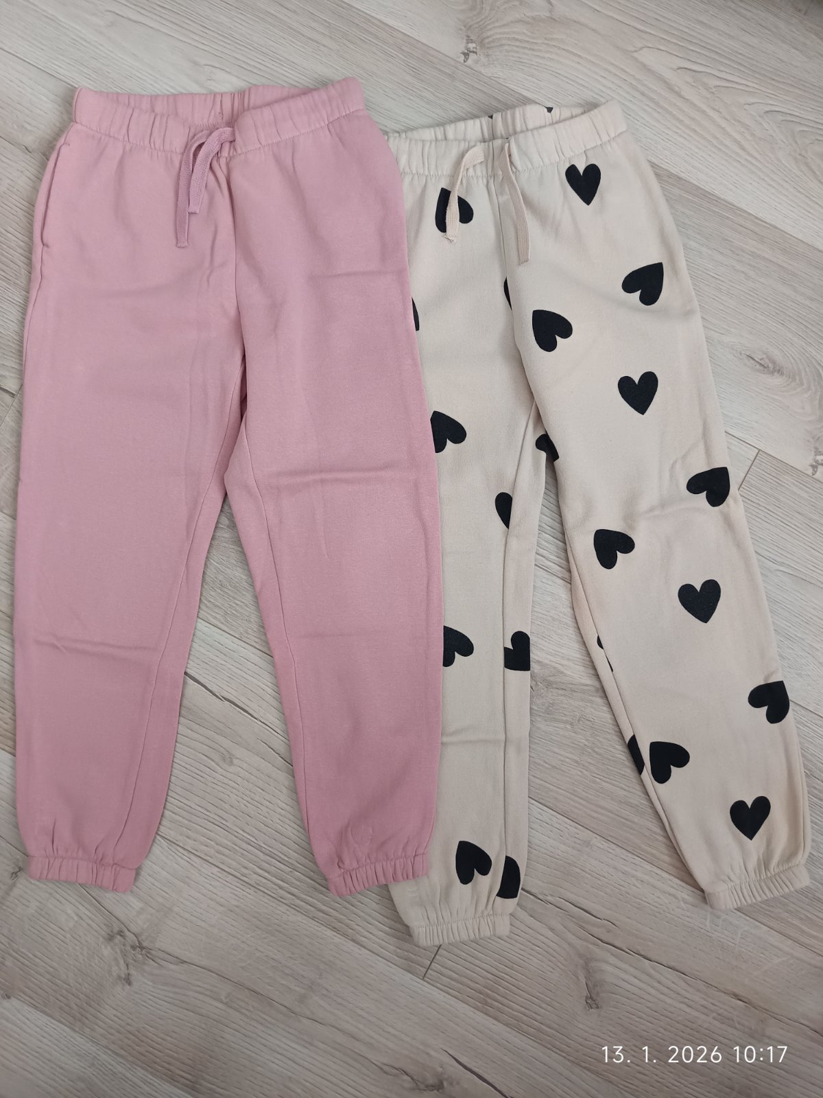 Nosené tepláky po jednom dieťati, bez poškodení, veľkosť 128, cena 12 € za obe + pošta / packeta.