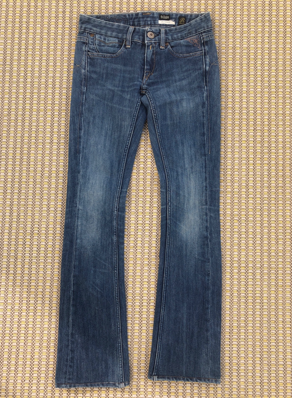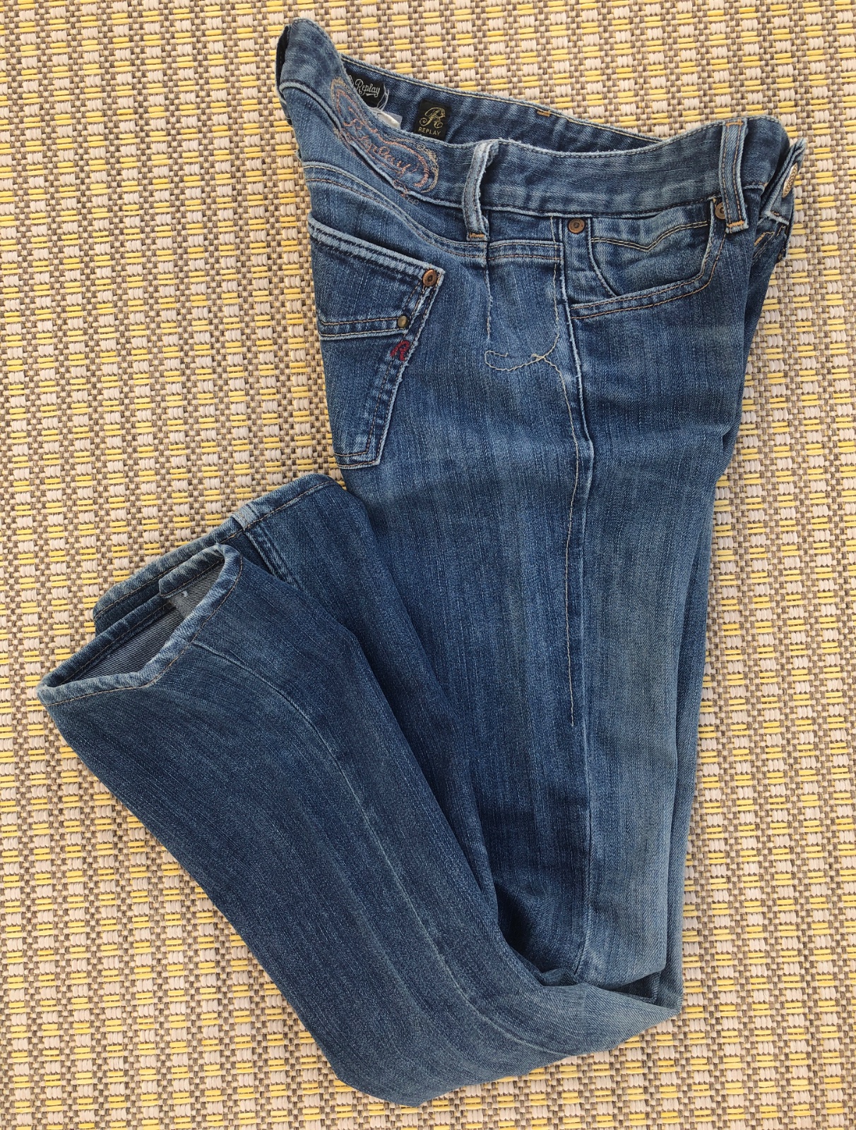 Jedinečný strih, ktorý krásne formuje postavu. Veľkosť pásu 25, dĺžka 30. Vo veľmi peknom stave.