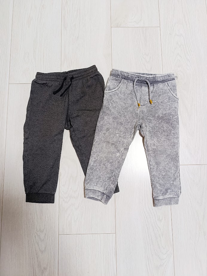 Dvoje teplacky v super stave, bledsie sive Mango a tmavsie sive H&M velkost oboje 92
