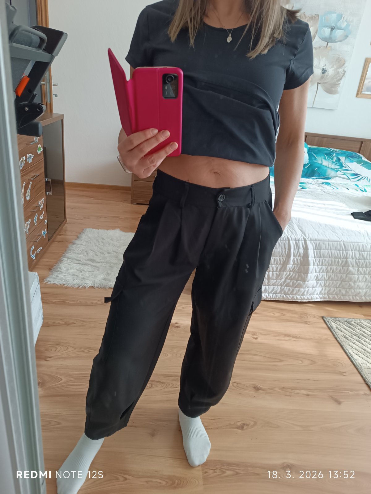 Oblečené raz, pohodlné, ,farba sýta čierna,miery na fotkách